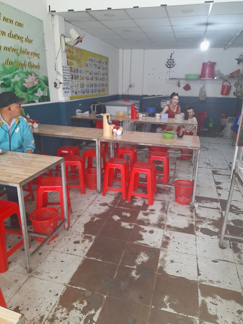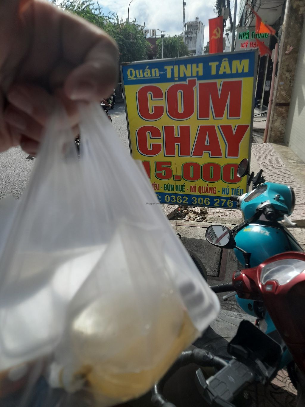 Vietnamese vegan restaurant serving mostly com chay and plant-based milks. Offers a menu on the wall for those who prefer not to choose from the pre-cooked com chay selection. No English spoken and no menu in English. Plenty of seating inside. Payment accepted by cash or bank transfer. Open Mon-Sun 6:00am-8:00pm.