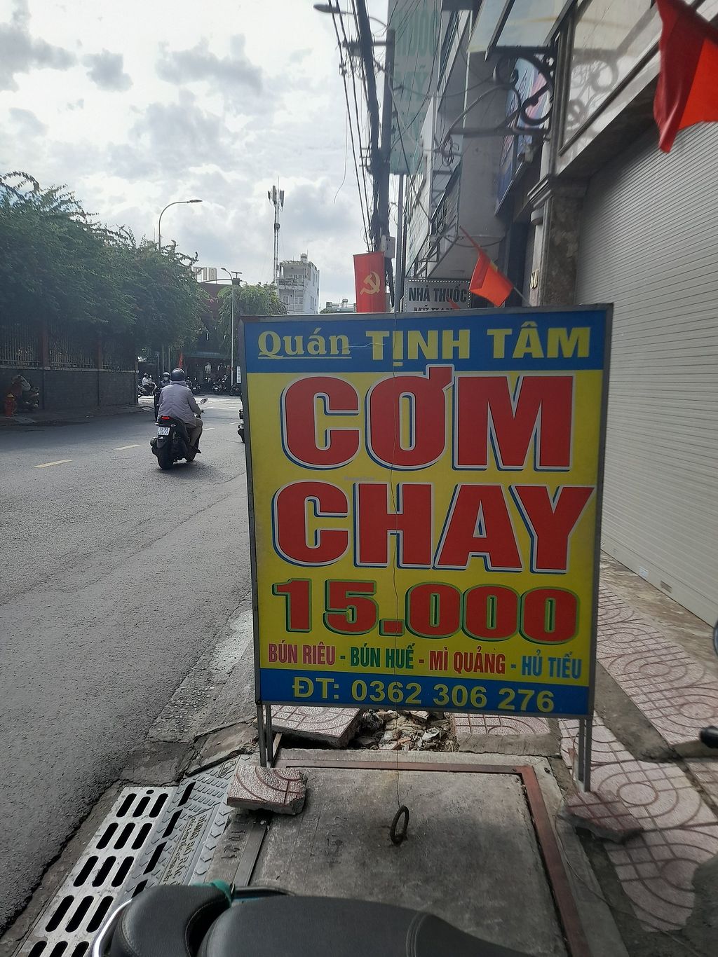 Brilliant all vegan Vietnamese restaurant. They have a great com chay selection. Also a menu on the wall if you don't want from the pre cooked vegan foods. Menu in Vietnamese only. Nice friendly family who own and run this little vegan restaurant. No English spoken. Ample seating inside. My excellent com chay was only 25.000 Dong! Got a free soup with it. Payment by cash or bank transfer.