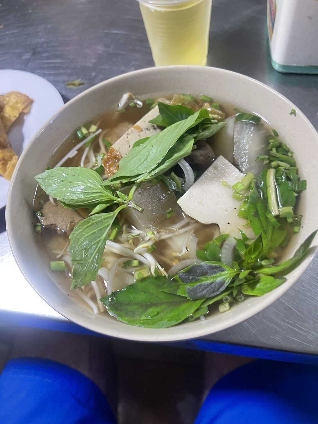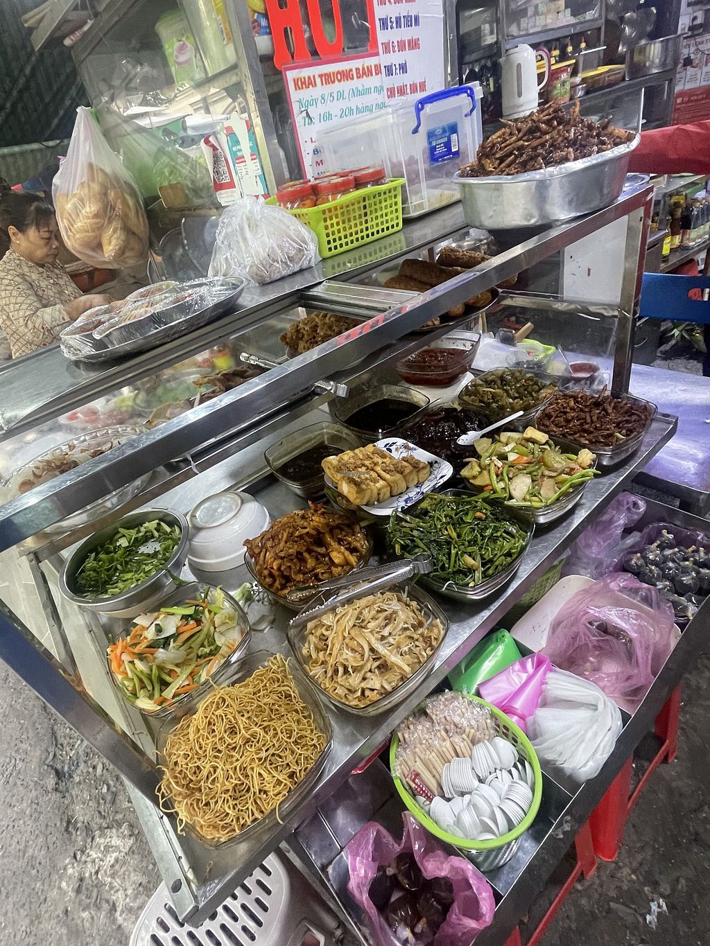 Vegetarian restaurant offering local com chay dishes. Most items are vegan except for two savory 'cake' dishes that contain egg. Serves soup, rice, and noodles. Note: no English is spoken. Open Mon-Sun 6:00am-7:00pm.