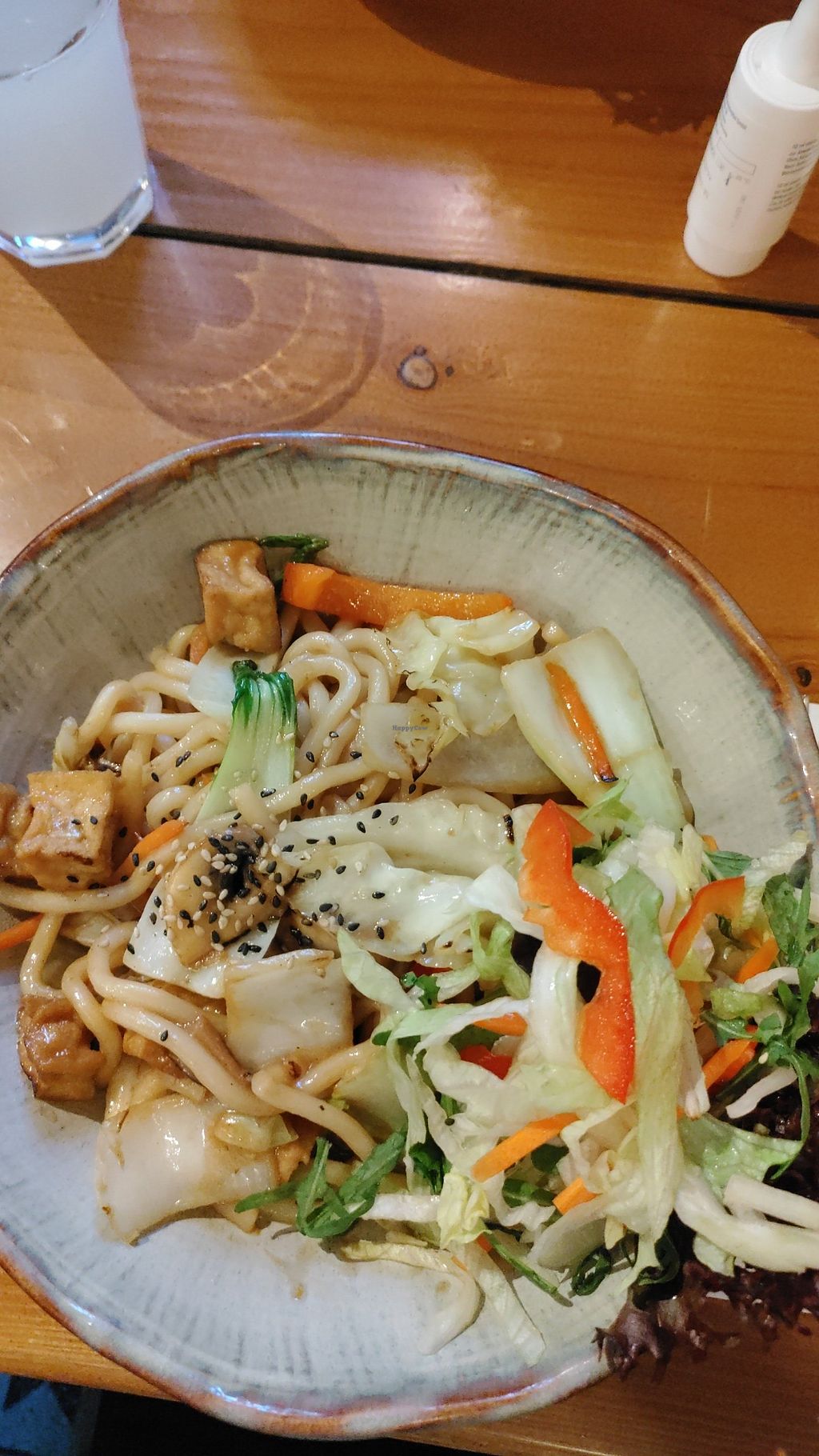 veganes Fischgericht mit Reis, Gemüse und Kimchi