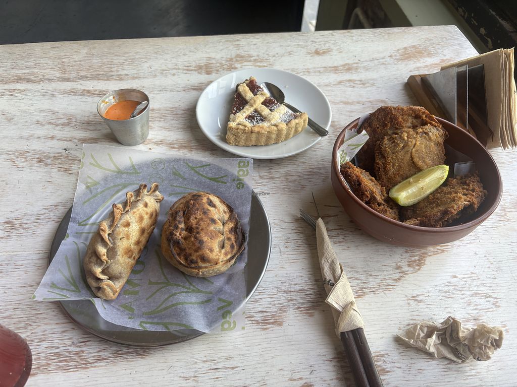 I tried their vegan jambon & tofu tomato empanada fried tofus with salsa sauce tart with red fruits lemonade. Especially tart was soooo good! I loved fried tofus as well. I thought they are smaller but actually portions were big. I liked empanadas too but fried tofus more. I recommend this place to vegans 🌱☺️