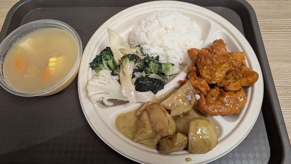 Come Enjoy Veggie 同享素食 is a sister shop of Go Happy Veggie 同樂素食. Both offer a variety of vegetarian and vegan dishes. You can buy 2-3 dishes with rice and soup or a full dish. Very reasonable prices at an excellent location. Friendly staff as well.