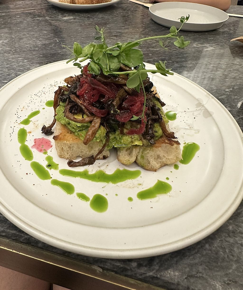 Avocado toast with mushrooms and onions