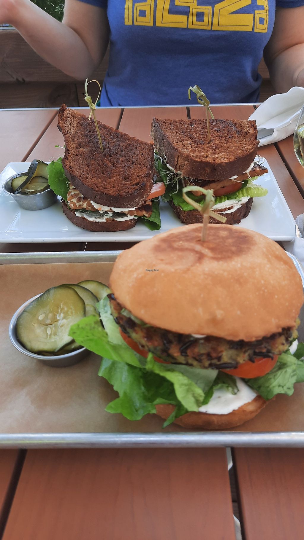 Tempeh sandwich (above) and wild rice burger (below) both veganized