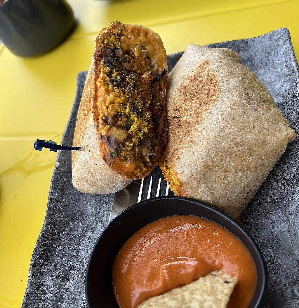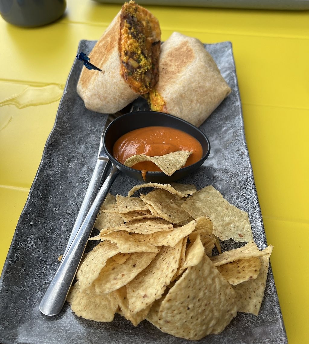 The burrito came with chips and Vegan queso and the falafel wrap came with their in-house popcorn which is super flavourful. One thing I really did like was both wrap didnt fall apart when eaten!