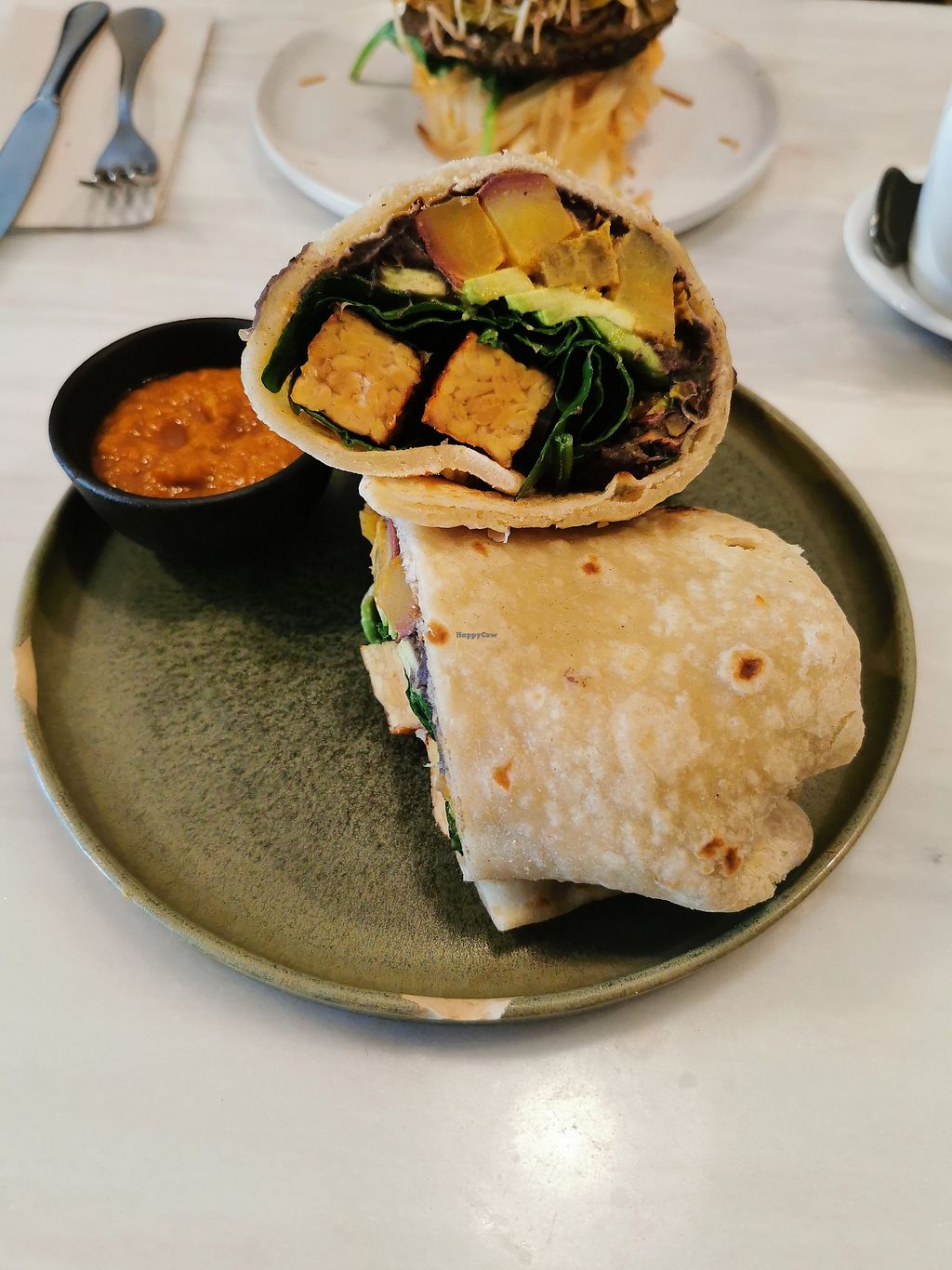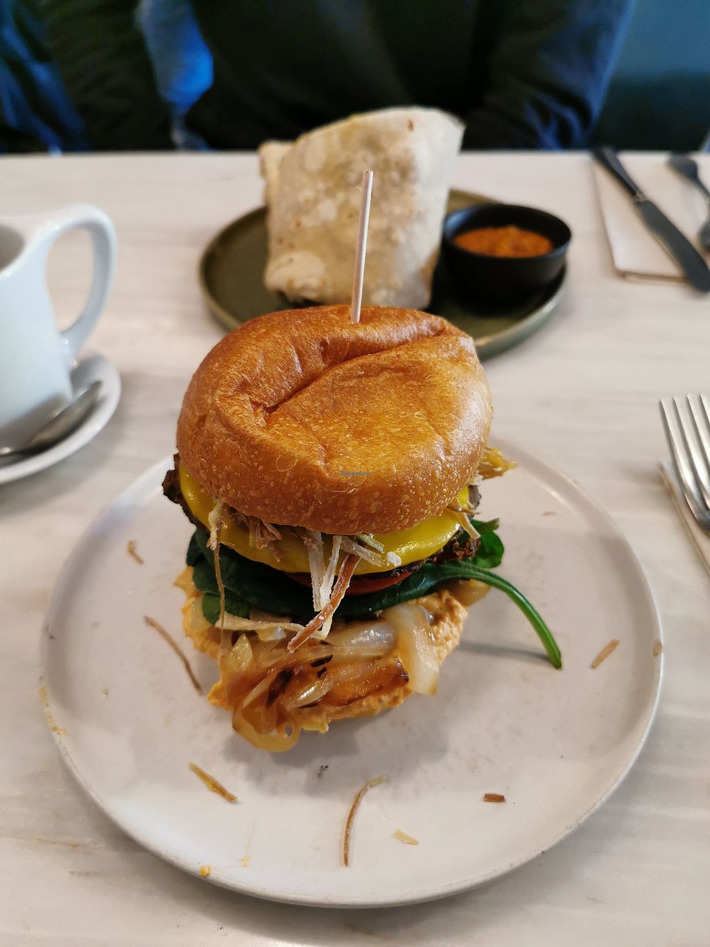 Read moreWe also got the breakfast burrito with tempeh which was HUGE, gluten free matcha pancakes (had way too much cashew cream and too little syrup berries) and a slice of carrot cake (a bit dry, it had the same cashew cream as the pancakes with a little lemon added). Also got a flat white and capuccino. #Veganuary