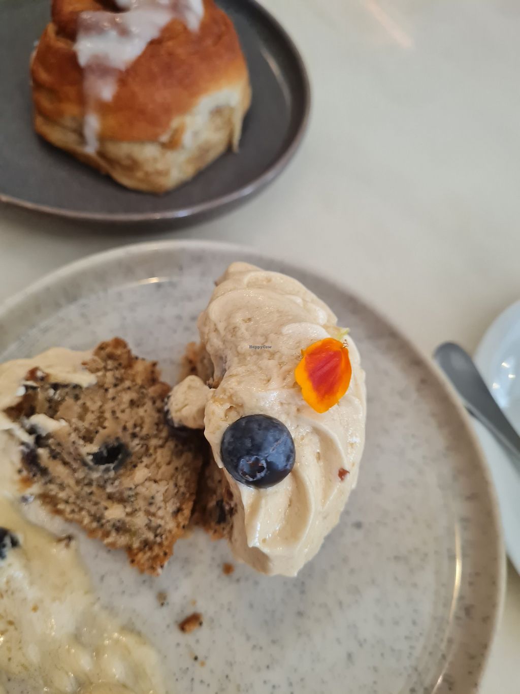 Good variety of vegan dishes but not many vegan pastry options, just carrot cake and banana bread. They charge 60ct extra for oat and almond milk. I had matcha pancakes, and those where pretty good but a bit overpriced regarding the portion size. I really like the interior and the music there!