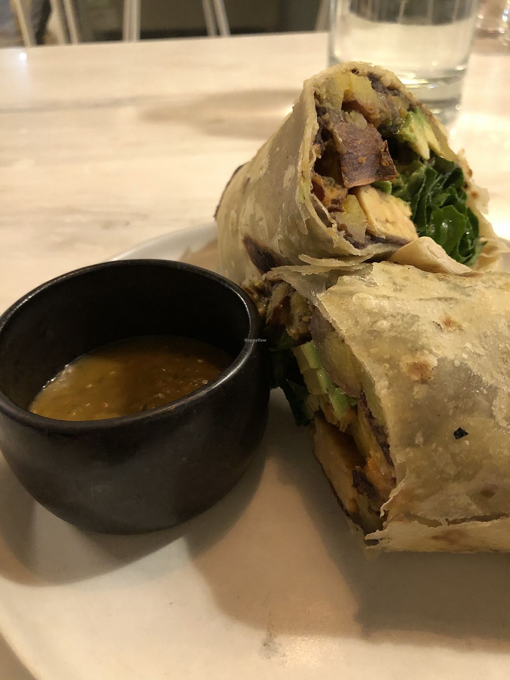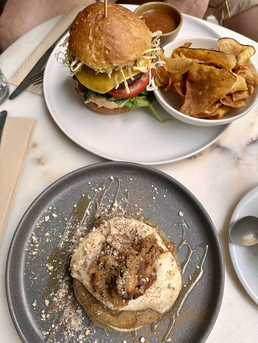 Had the vegan chai pancakes with apple which were amazing, and managed to sample the vegan breakfast burrito cinnamon swirl and bun off of family members. All of the breakfast options appeared to be vegetarian, with the majority also being vegan. Would be a great stop even just for a coffee and snack.