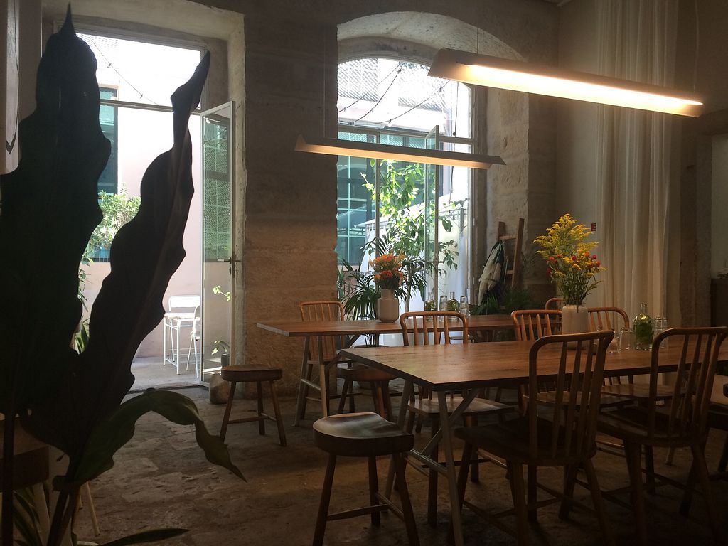The new location is simply stunning. Very white, minimal furniture, many plants.