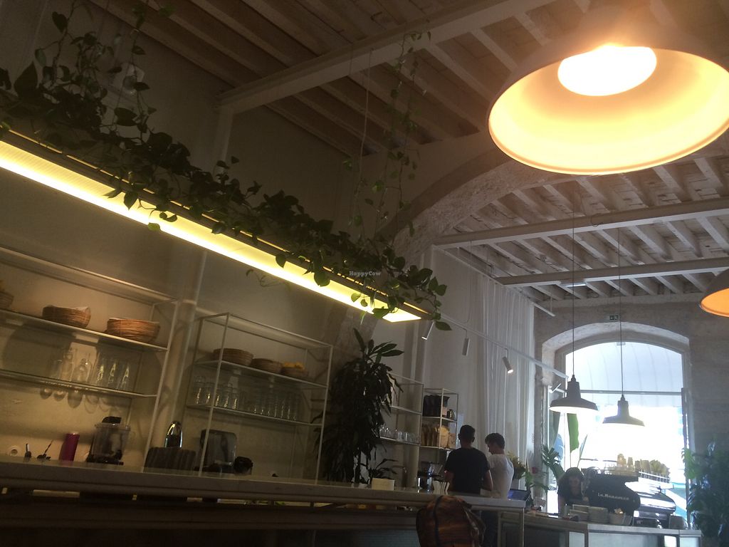 The restaurant is not fully vegan, but has a bunch of good options. The tempeh sandwich and salads are very good. Good coffee as well. Lovely space.