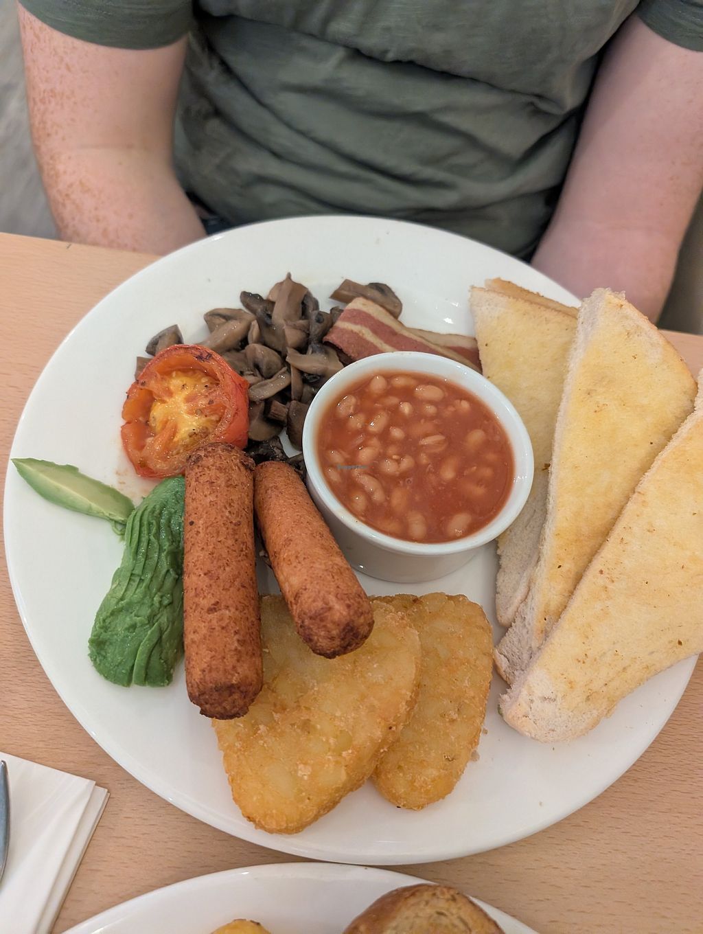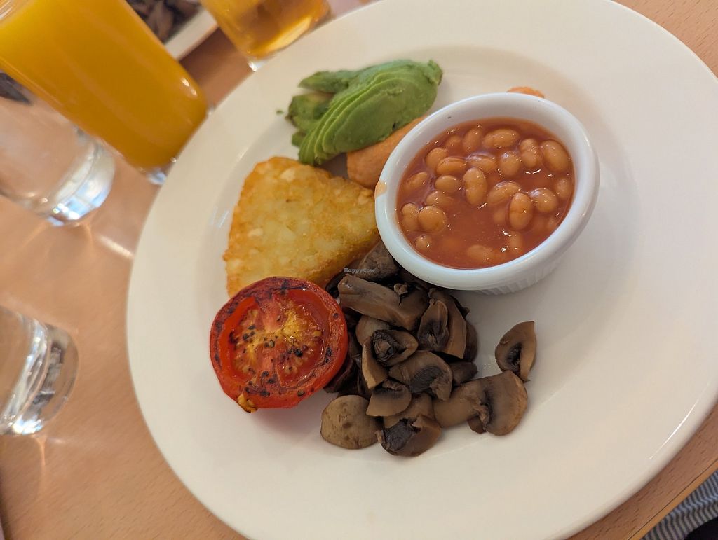 Vegan breakfast with optional vegan black pudding added (this is the s…