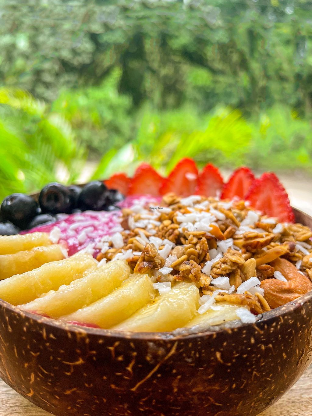 Pitaya , cashew butter and strawberries
