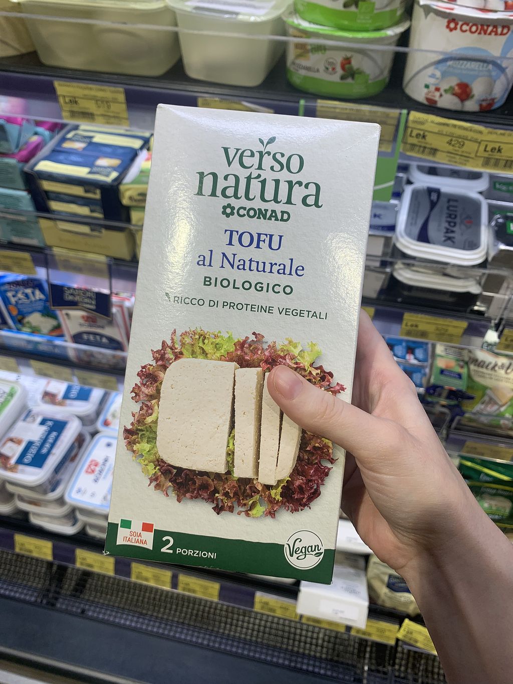 Have spent a few weeks travelling in Albania and been into dozens of different supermarkets, and this Conad is the only one I’ve managed to find specialty vegan products. We ducked in here to get some snacks while we waited for the bus, as it’s in front of the international bus station (in the basement level of Ring Center). There’s no specific vegan section, most of the stuff was mixed in with the “regular” products so you gotta keep an eye out for it. But was pleasantly surprised to see some Valsoia cream cheese and other items.