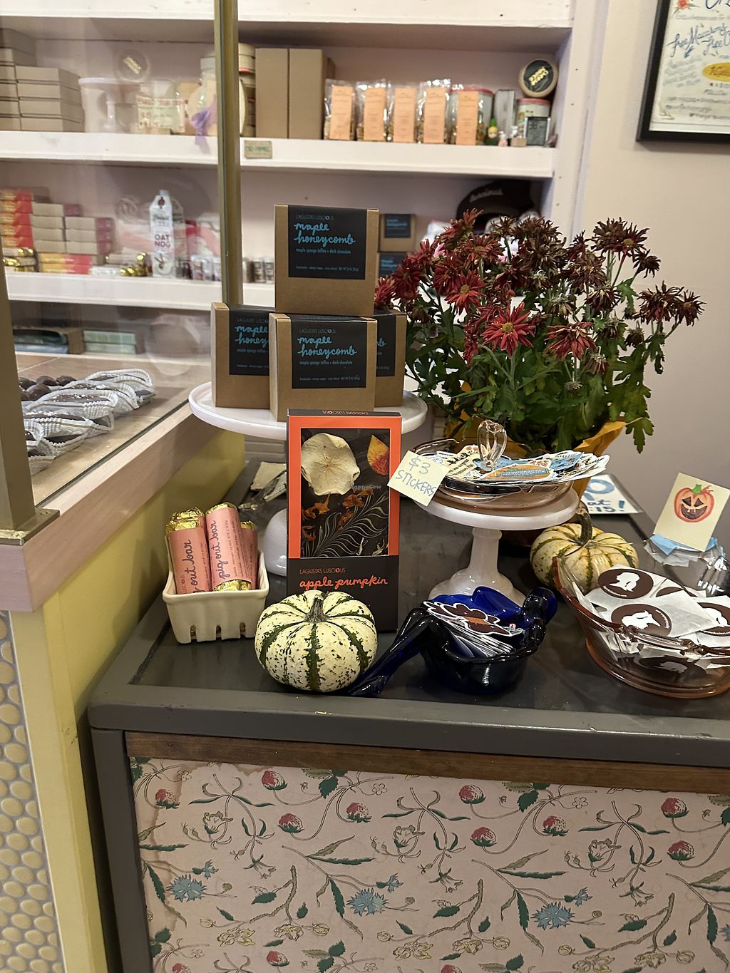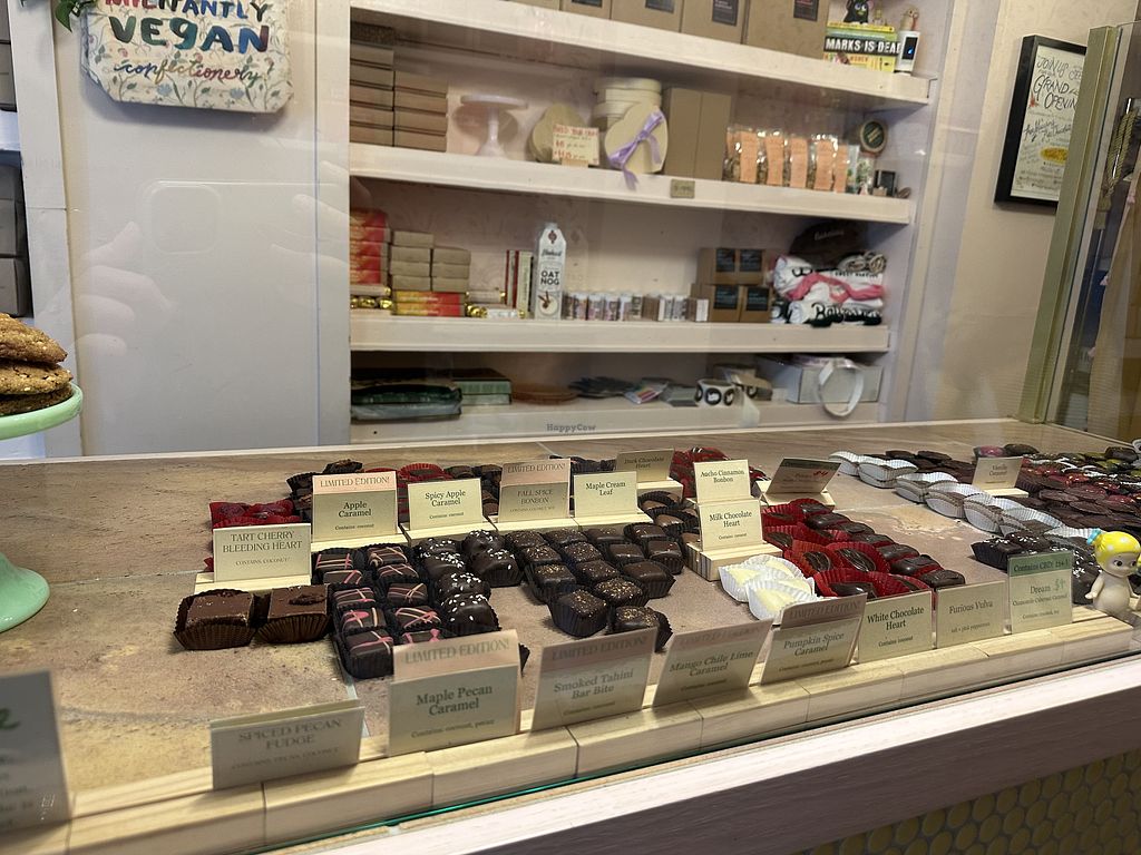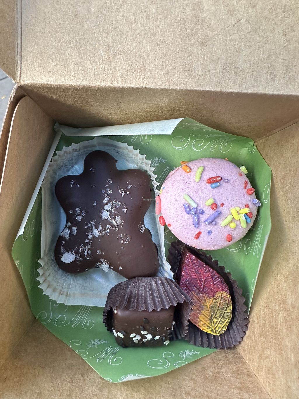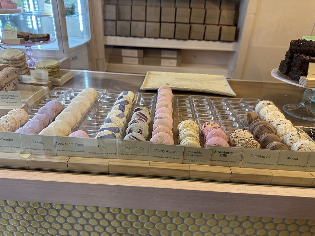 Turtle, strawberry milk macaron, maple chocolate, another chocolate