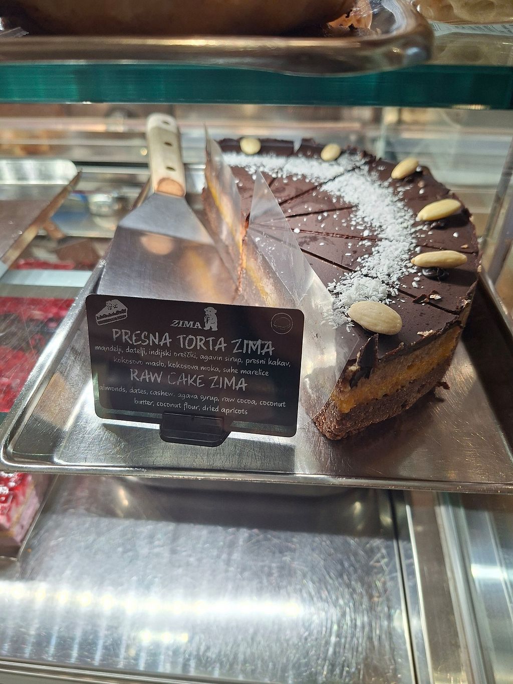 Tried the vegan raw cake which was lovely - it had a lovely taste of chocolate with nuts and apricot