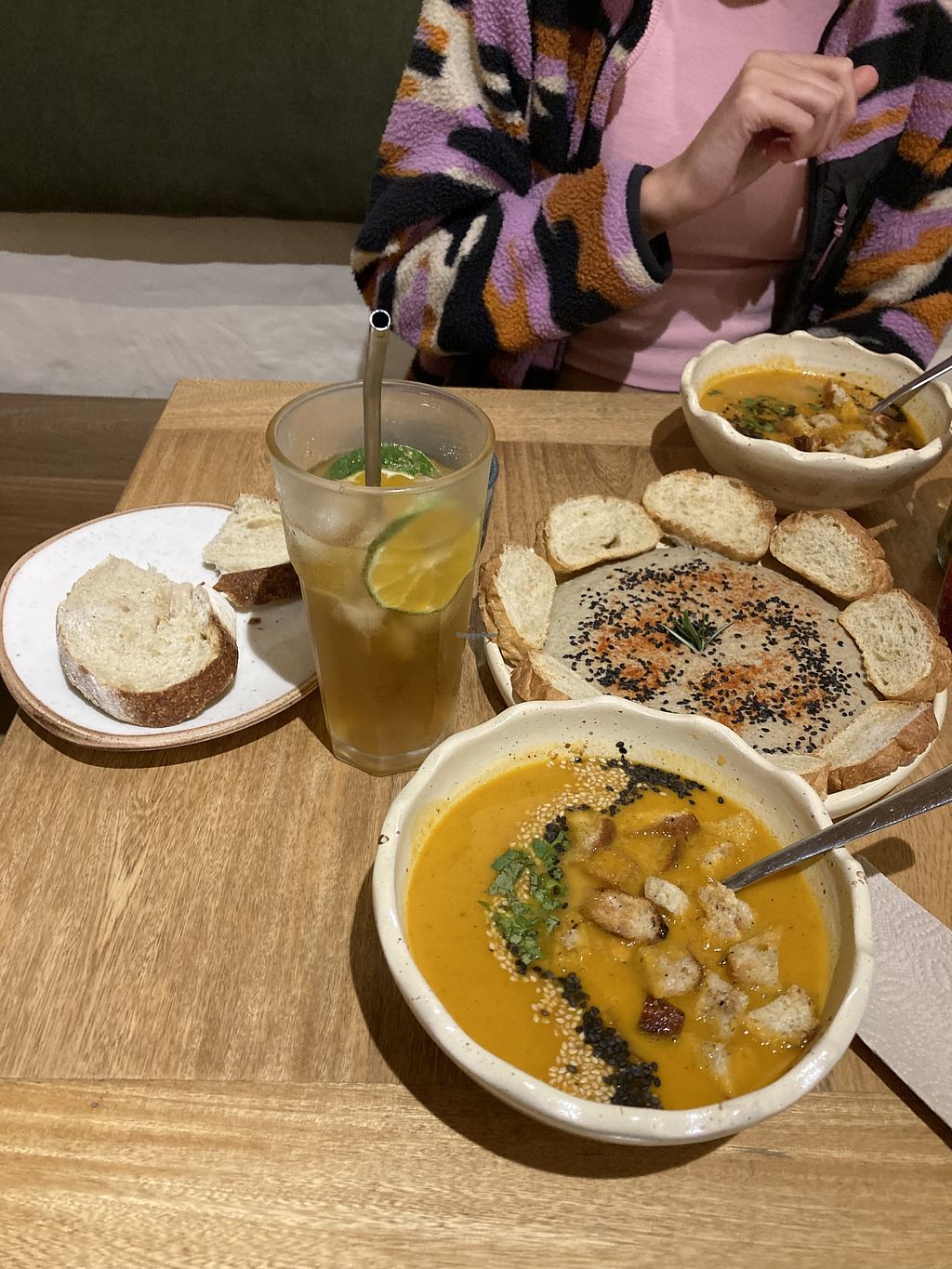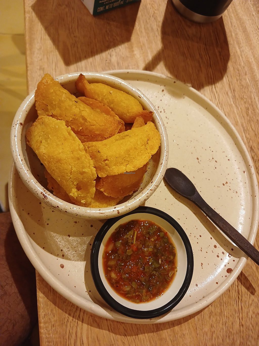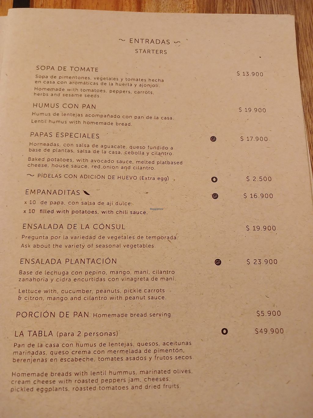 We ate at the restaurant 3 nights whilst staying in the hotel itself. Across the 3 nights we had Paisa, the choripan de La consul (hot dog), the burger, hummus with bread, empanaditas, papas especiales, la tabla (the hummus/bread sharing platter) and the mixto del consul. What we loved: the bread was delicious, along with the hummus, the paisa, the mixto del consul (the vegetables in them were in a delicious sauce), the chips/wedges were really nice and crispy and clearly homemade. What we were less keen on: the chorizo hot dog and the hamburger were made of a similar thing, I think the barley (texture like uncooked rice) made it unpleasant to eat and the brioche bread was a bit dry/overdone so difficult to cut and eat. We asked for the La tabla without cheese, however it still came with cream cheese so I would advise to make it clear that you are vegan not veggie when ordering food. Other reviews have mentioned the lack of atmosphere and we have to agree for the most part - it may be partly because it is also the hotel lobby so there’s a bit of a mix of things going on. It is a shame as it is a lovely place to sit and there are games etc to play, and when busy and there is background conversation it is better. Some quiet music might help especially if it’s a quiet evening and there’s not many tables dining. The staff are all really lovely. Overall, we would recommend visiting as many of the things we tried were delicious.