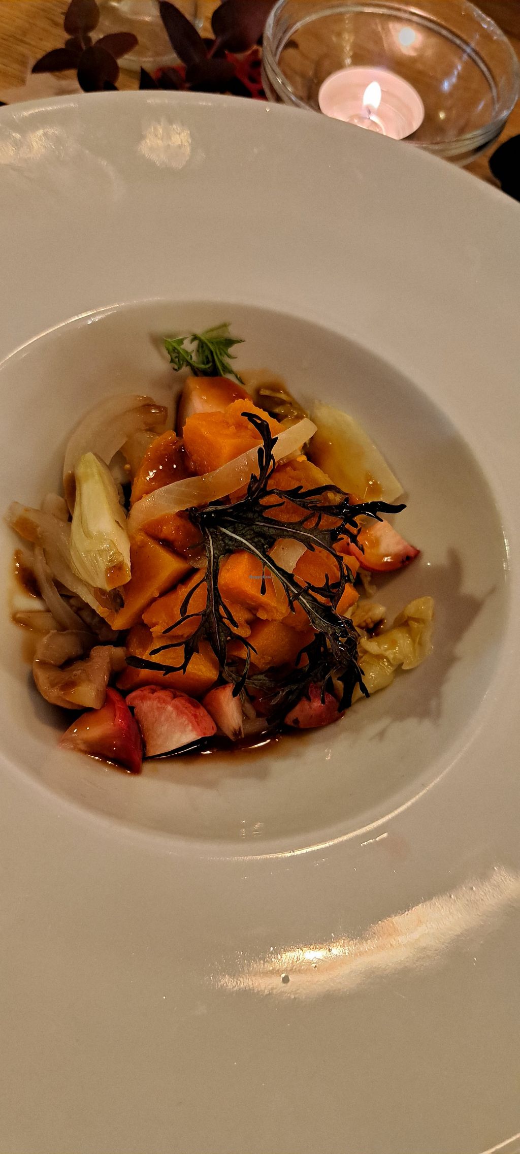 New Year's Eve dinner: pants cotta cake with pear sorbet