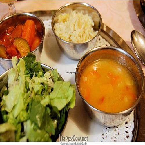 The restaurant was very crowded at lunch time but there still was enough space for everyone. The vegan thali was very good both times we went there, and they served delicious barley coffee afterwards. The atmosphere in general is very warm and friendly.
