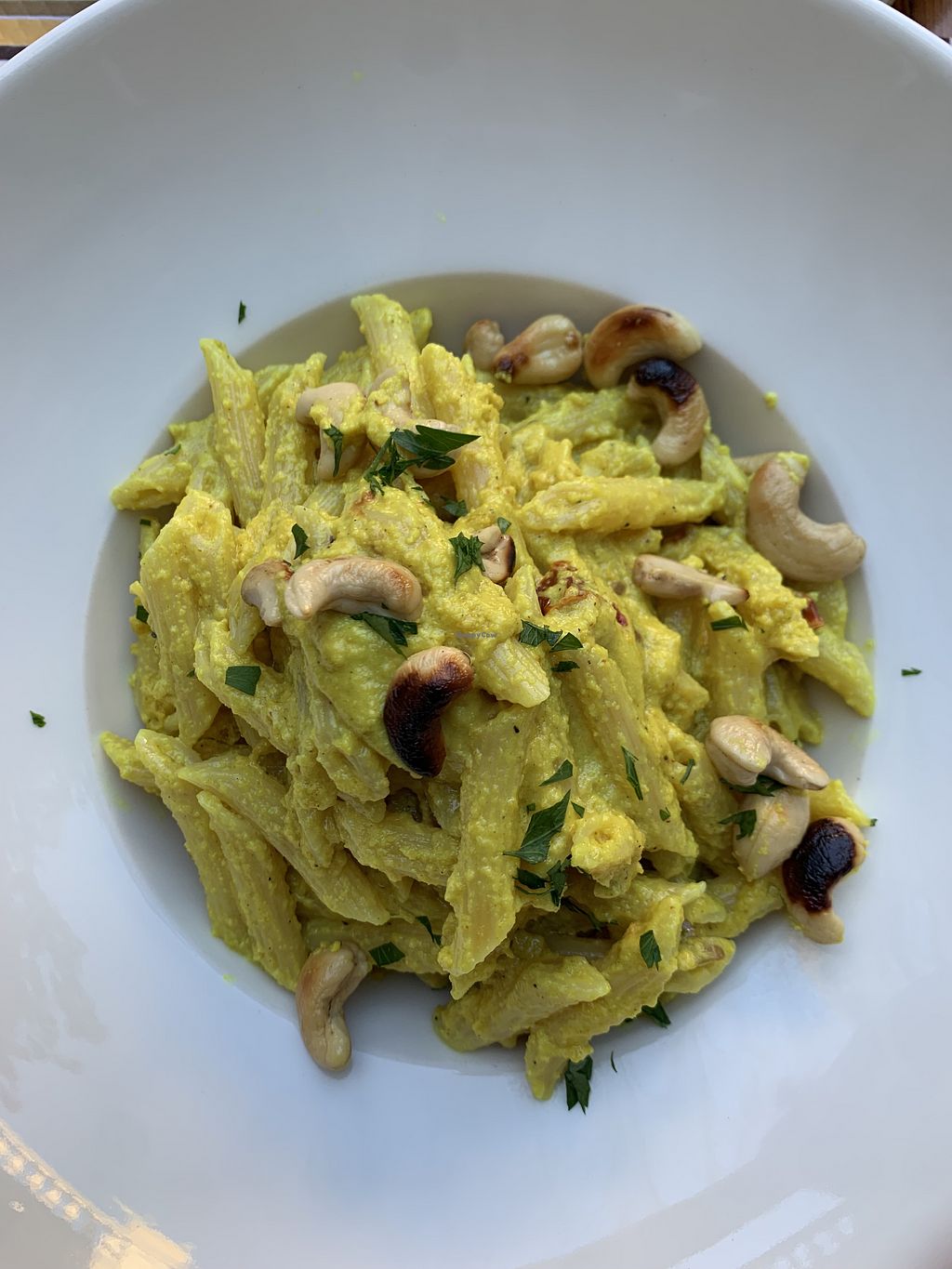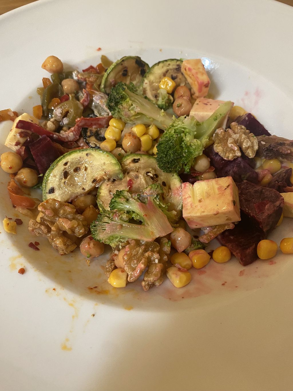 This is incredible! Pesto, crumbled almonds, red onion, tomatoes, and …
