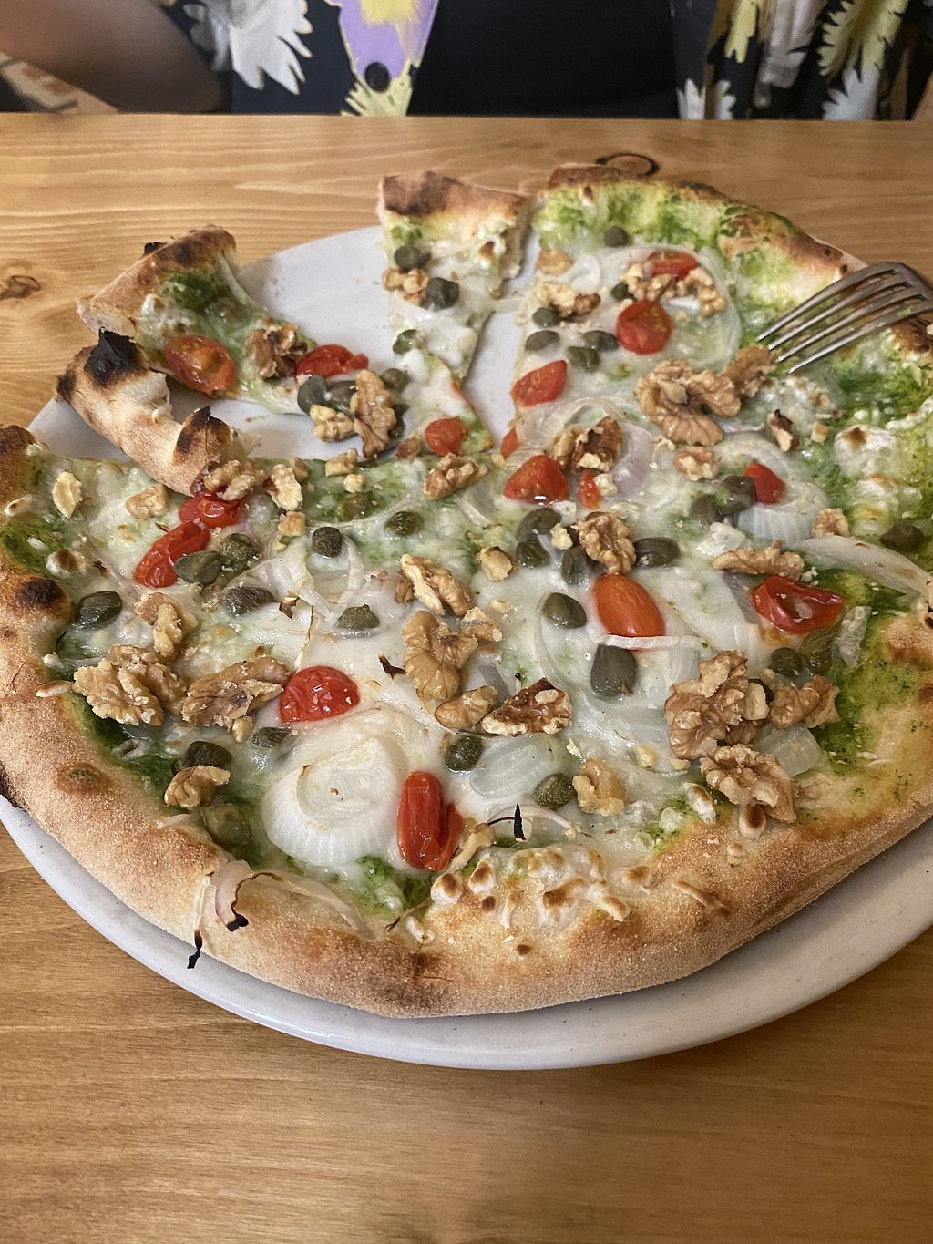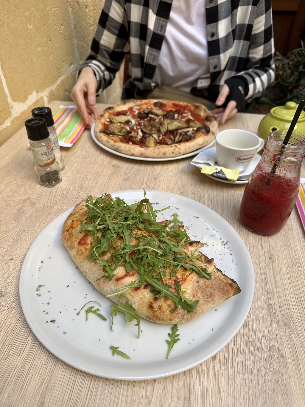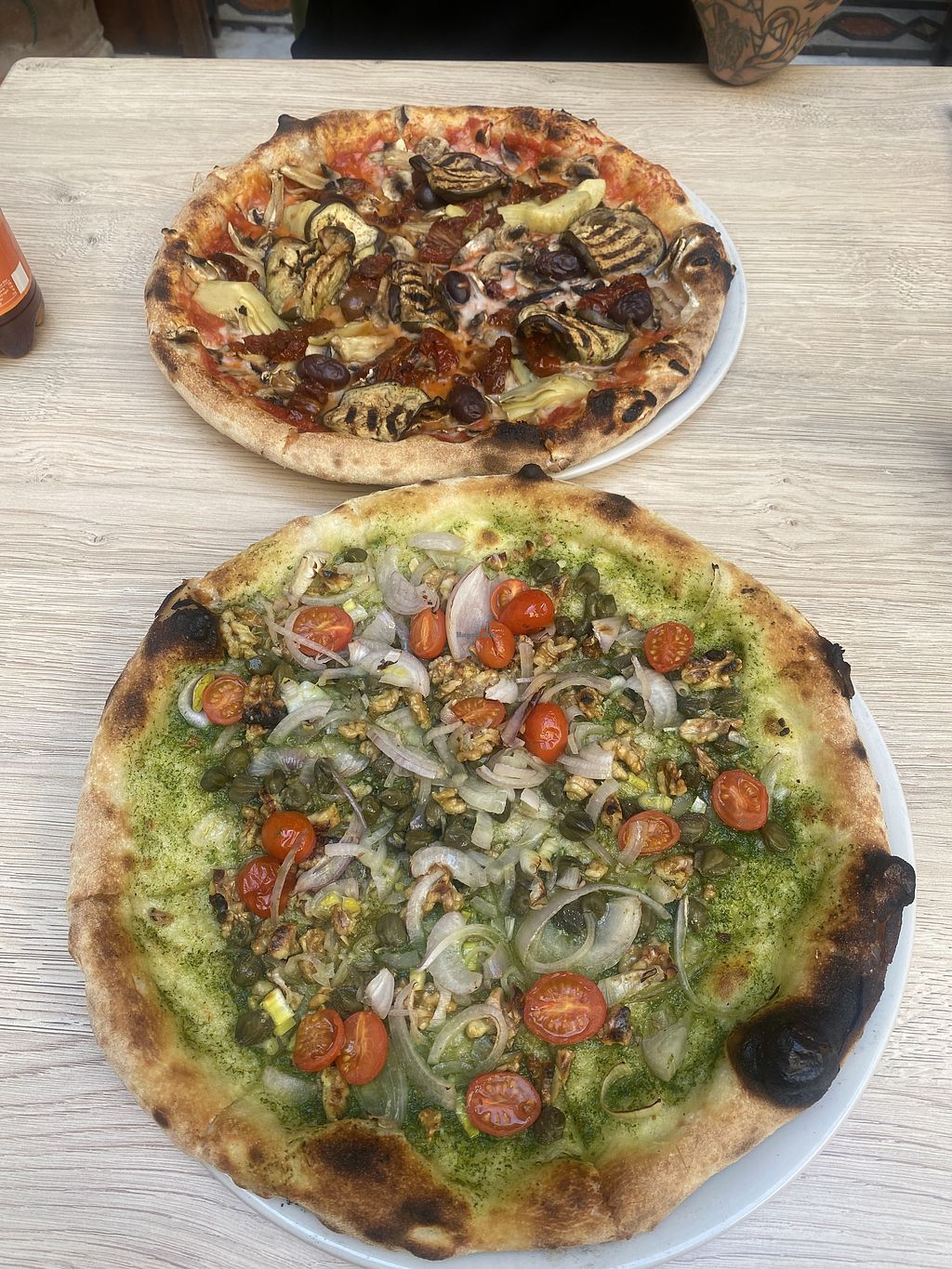 Vegan calzone and pizza gusto with added porcini and truffle oil