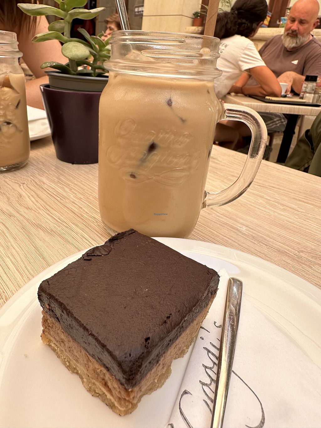 Iced oat Latte and „millionairs“ cake
