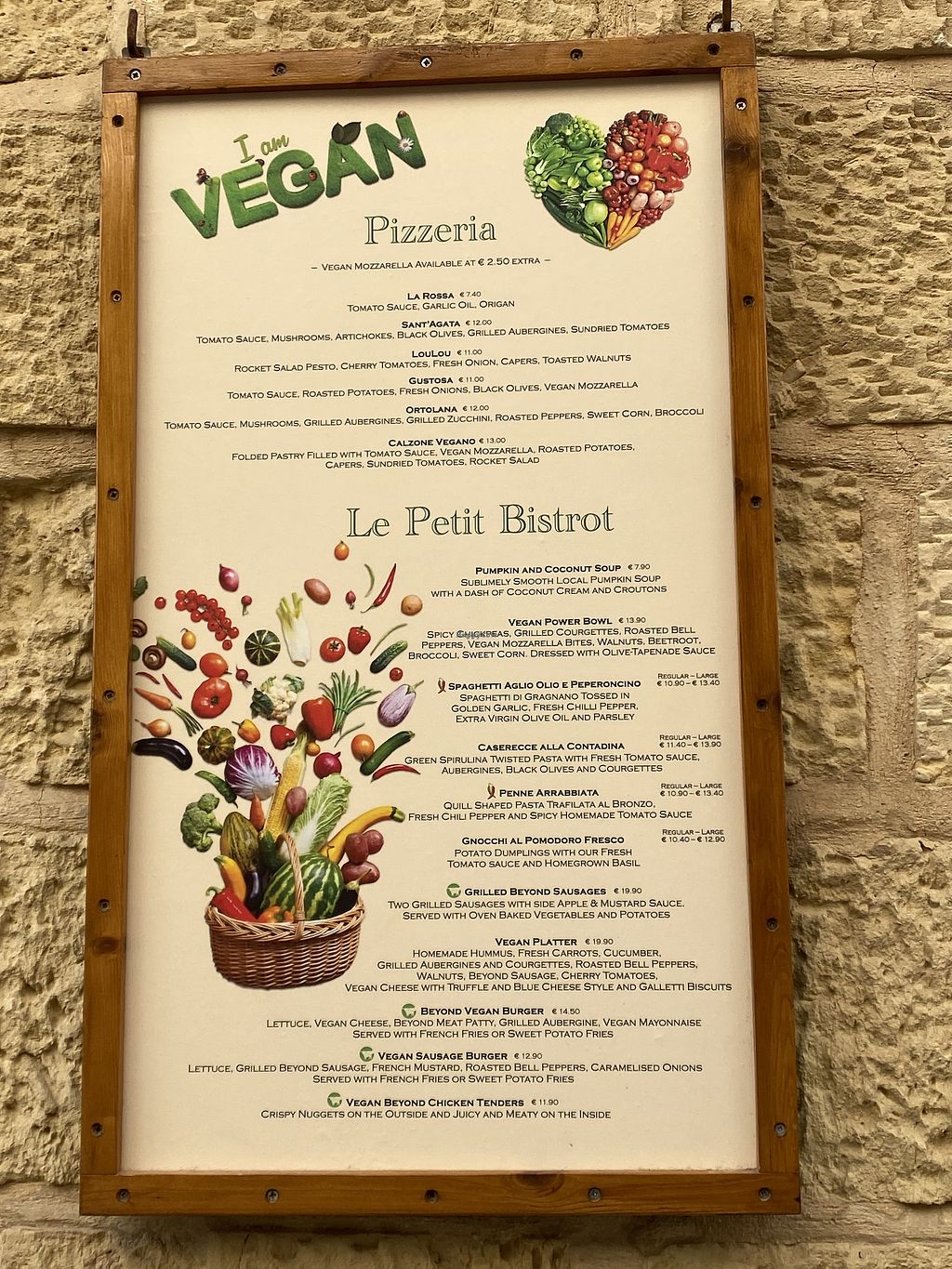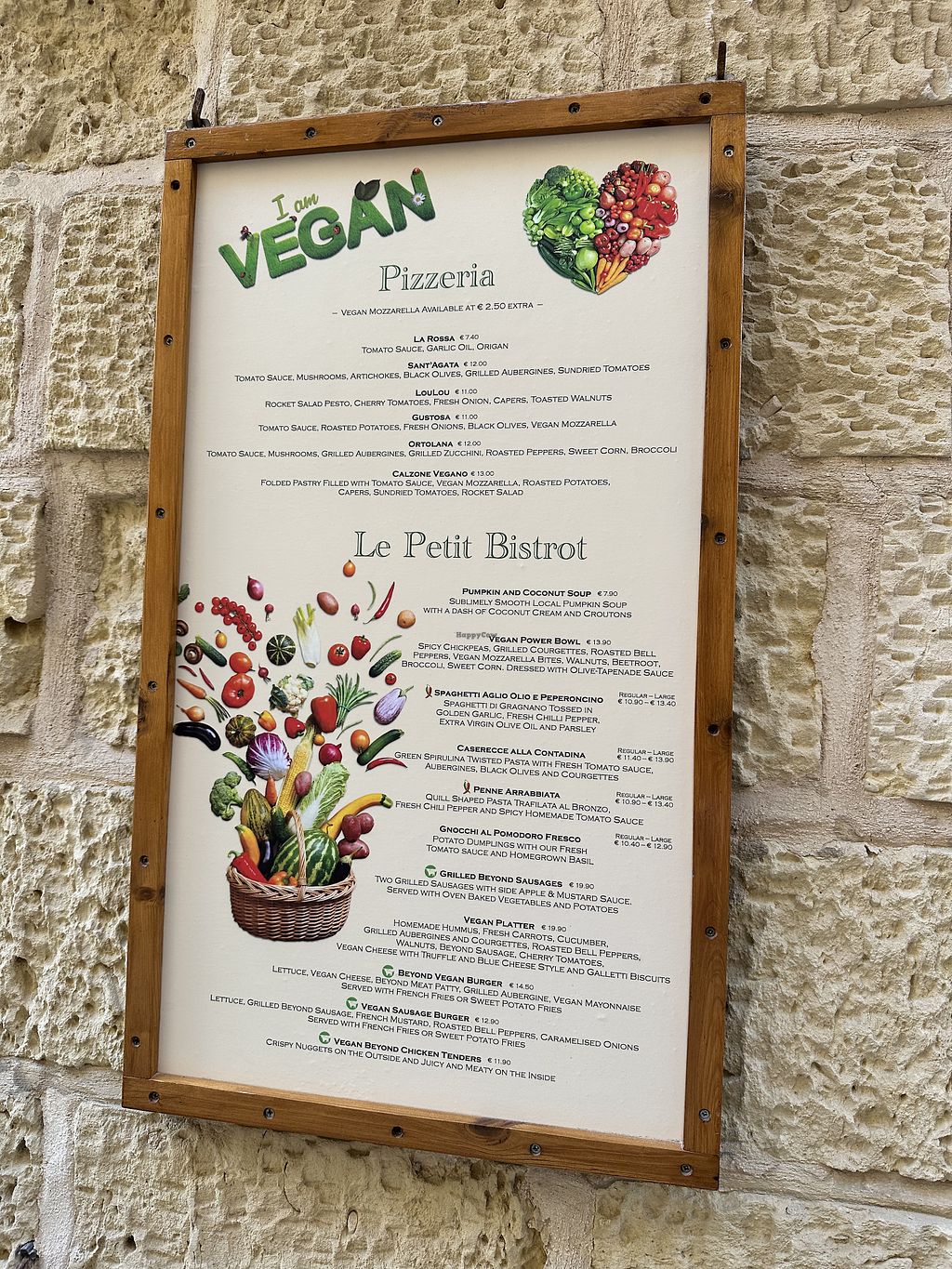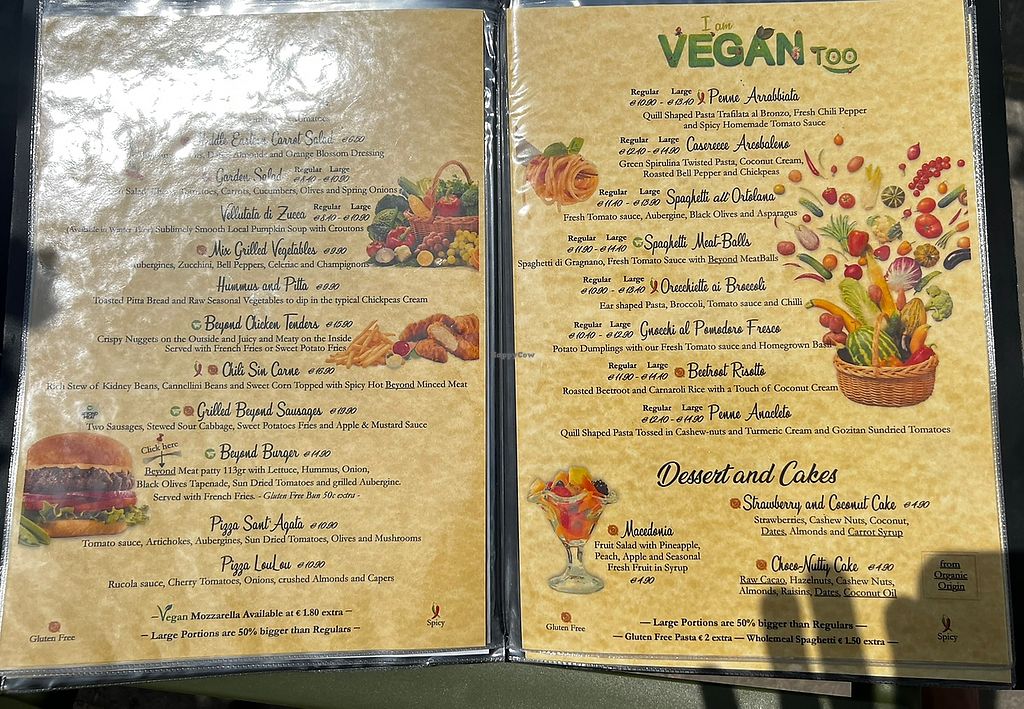 Main menu with vegan markings included