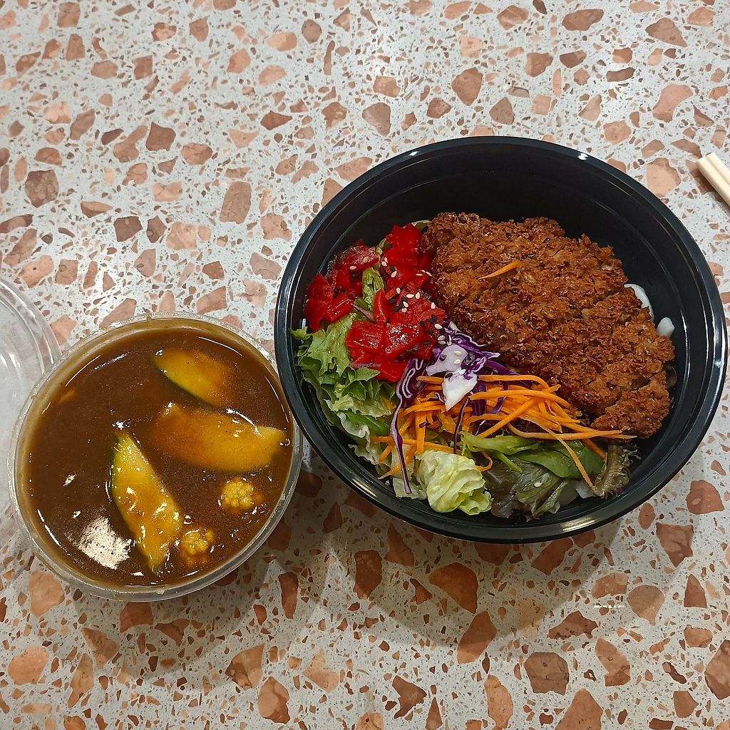 The vegan chicken katsu poke bowl was delicious and colourful and spiritually nourishing. Rad vegan place. Worth the trek :))