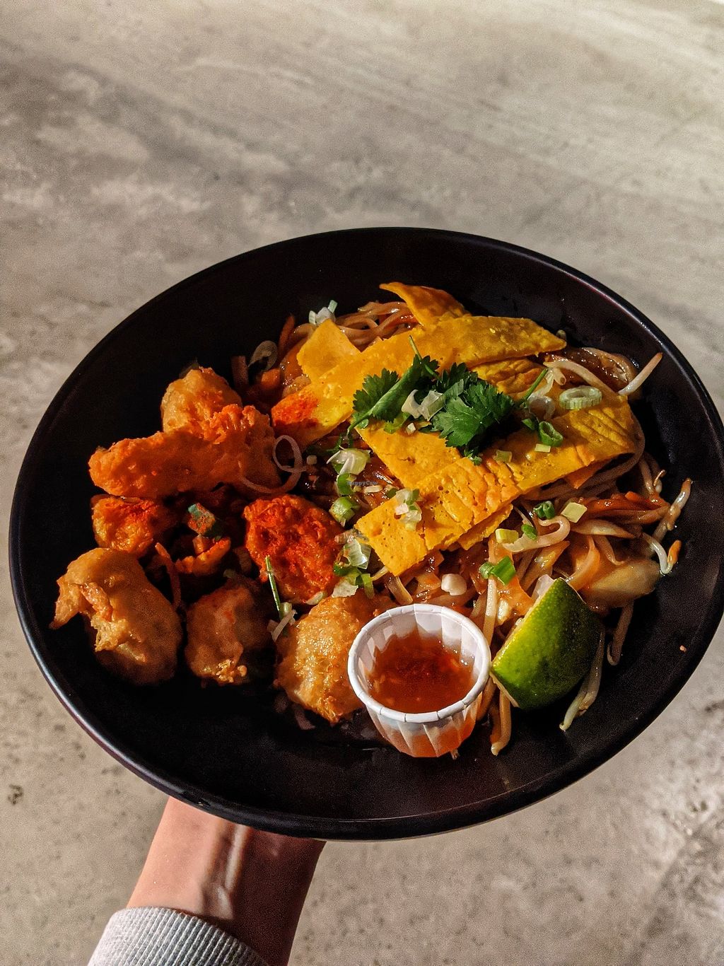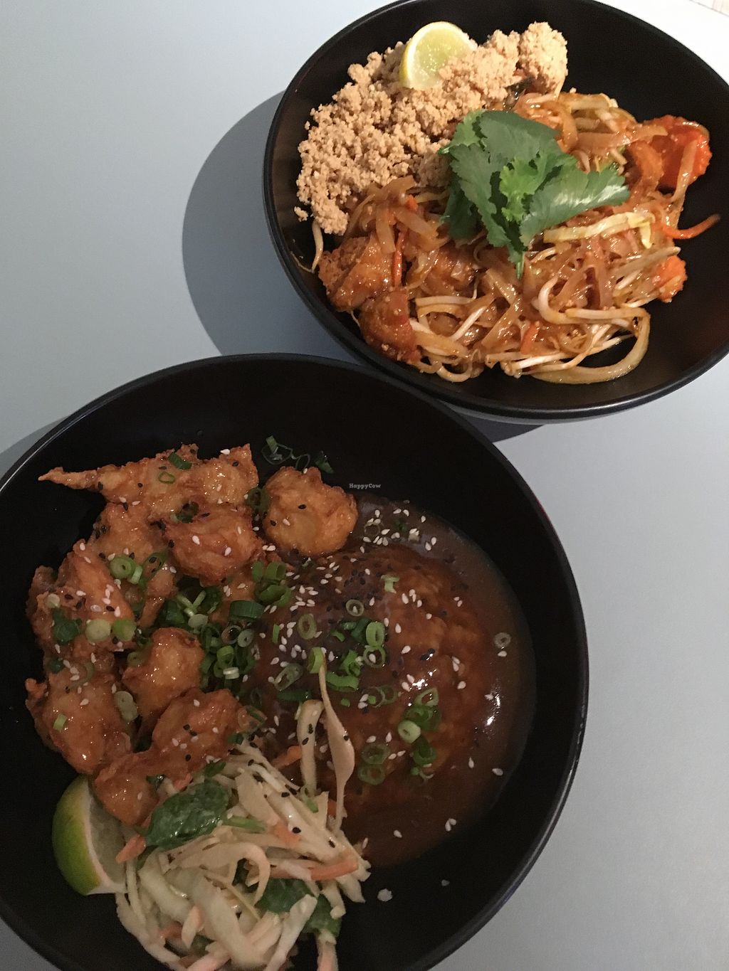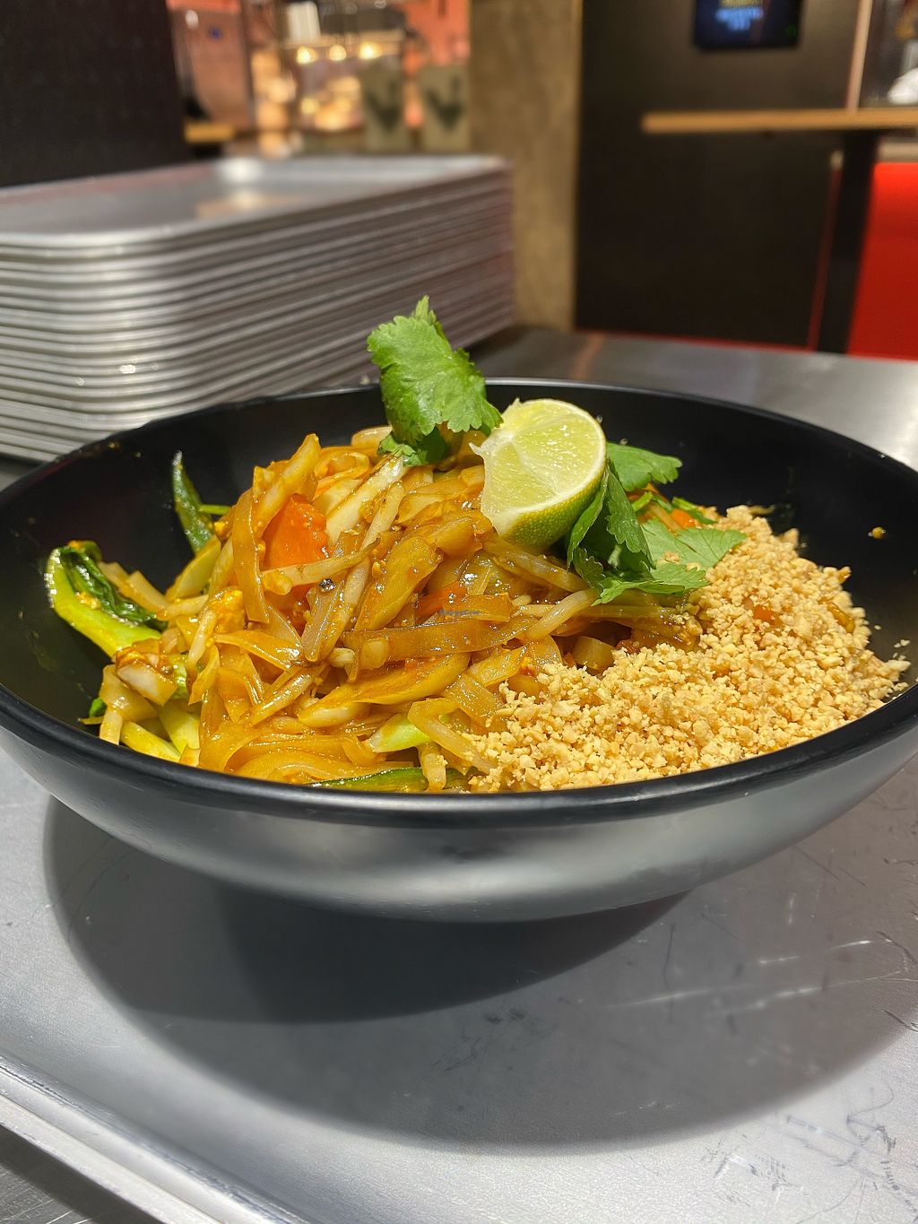 I had the vegan Chicken Pad Thai with Sweet Chili sauce and vegetables and rice noodles. Was the best vegan food I had in a loooong time. So good! Definitely will come back tomorrow.