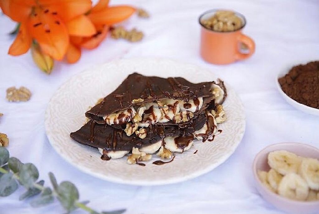 La Golosa! crepe hecha de cacao, rellena de plátanos, pasta de maní ca…