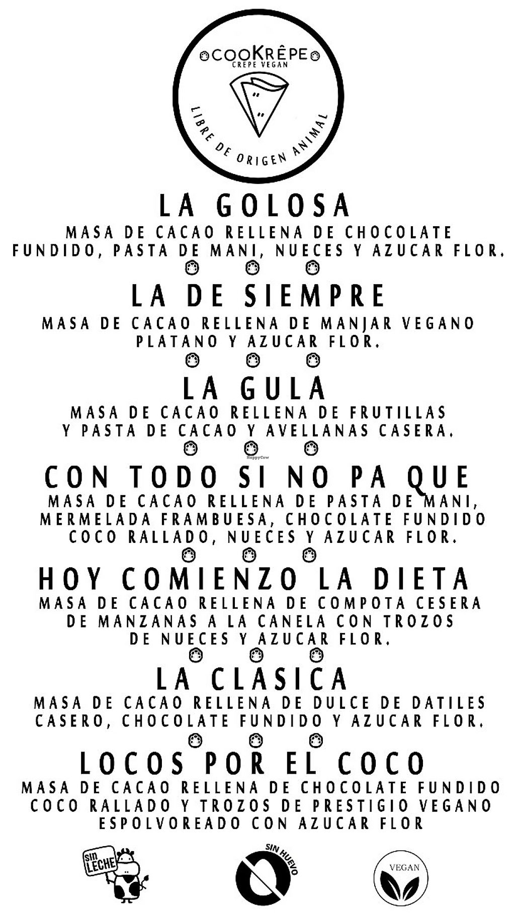 Menú Crepes dulces! 100% VEGANO. Sin aceite de palma y libre de transg…