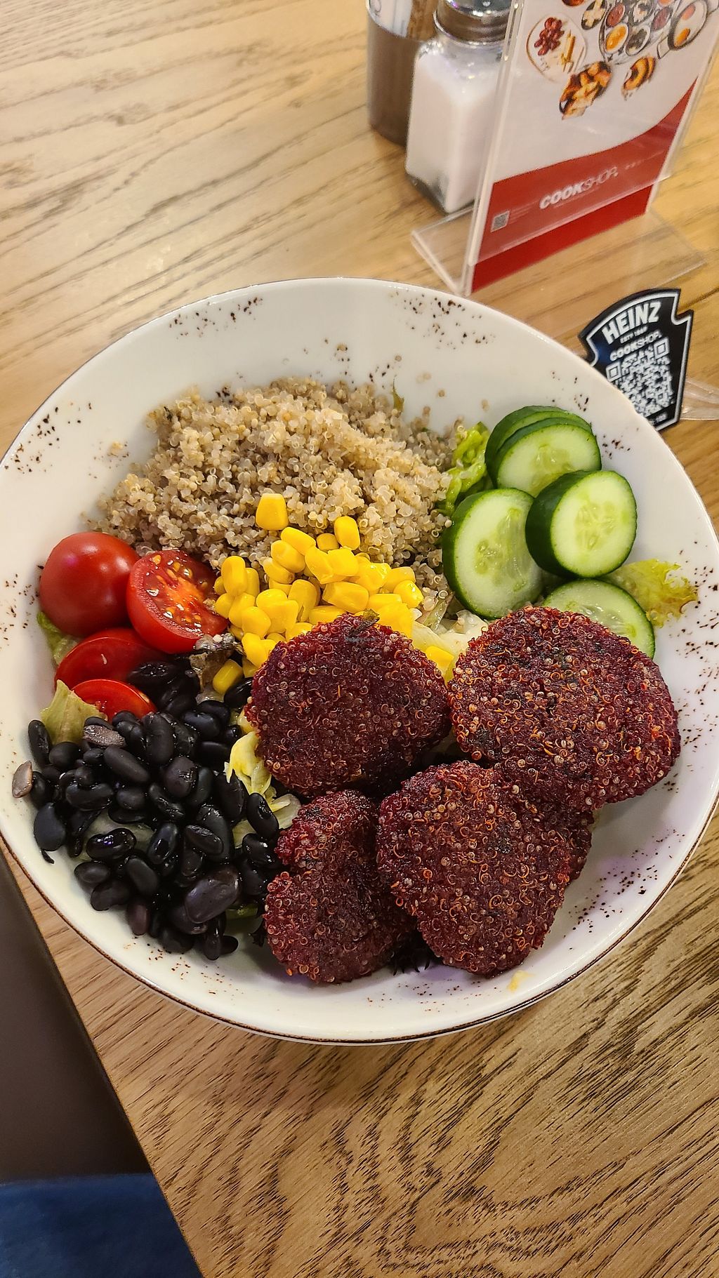 More vegetarian-friendly than vegan-friendly, but they do have a designated vegan bowl that was tasty enough and was fresh and wholesome. For vegetarians, they have other options like falafel bowl, zucchini noodle halloumi, and mushroom risotto. The menu link they directed us to is https://webmenu.pardonapp.co/en/cookshop-capacity-avm/3190/menu/20