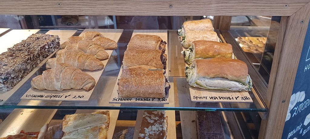 ... and handmade vegan chocolate as well! Serves breakfast all day long and you can vet traditional Swiss pastries vegan like plaited butter bun or croissant