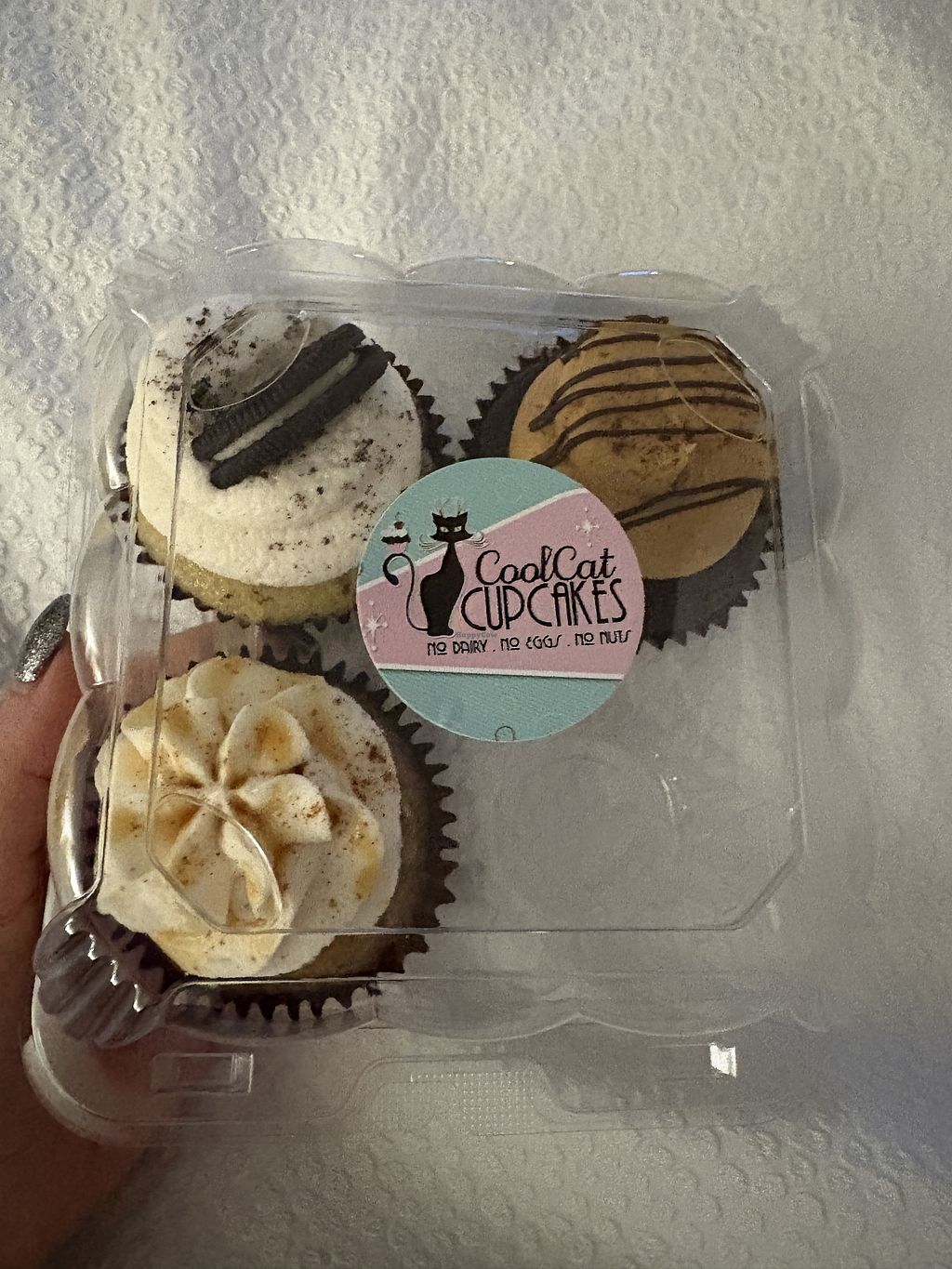 Got the cookies and cream cupcake and it was delicious. It came with a half Oreo on top of the frosting. One of the best vegan cupcakes I’ve ever had!