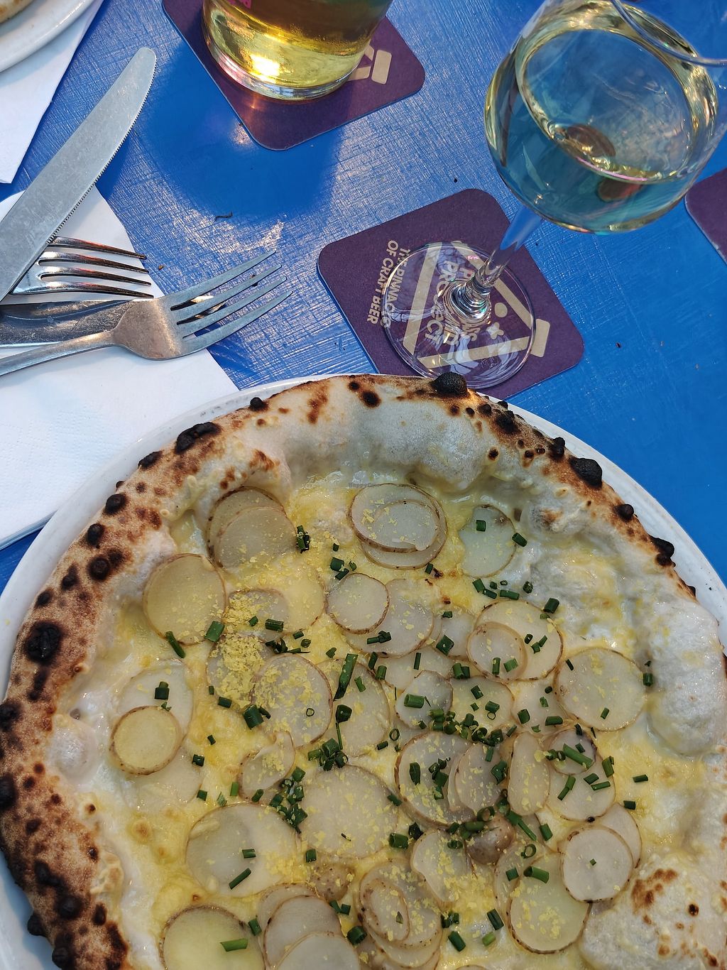 Serves meat, vegan options available. Taproom serving beers and sourdough pizza. Vegan options include the Marinara, Seitanic Pizza, Baby Spud (on request), and Shrooms (on request). Gluten-free pizzas are also available upon request. Open Mon 11:00-20:00, Tue-Wed 11:00-21:00, Thu 11:00-22:00, Fri 11:00-23:00, Sat 12:00-23:00, Sun 12:00-19:00.