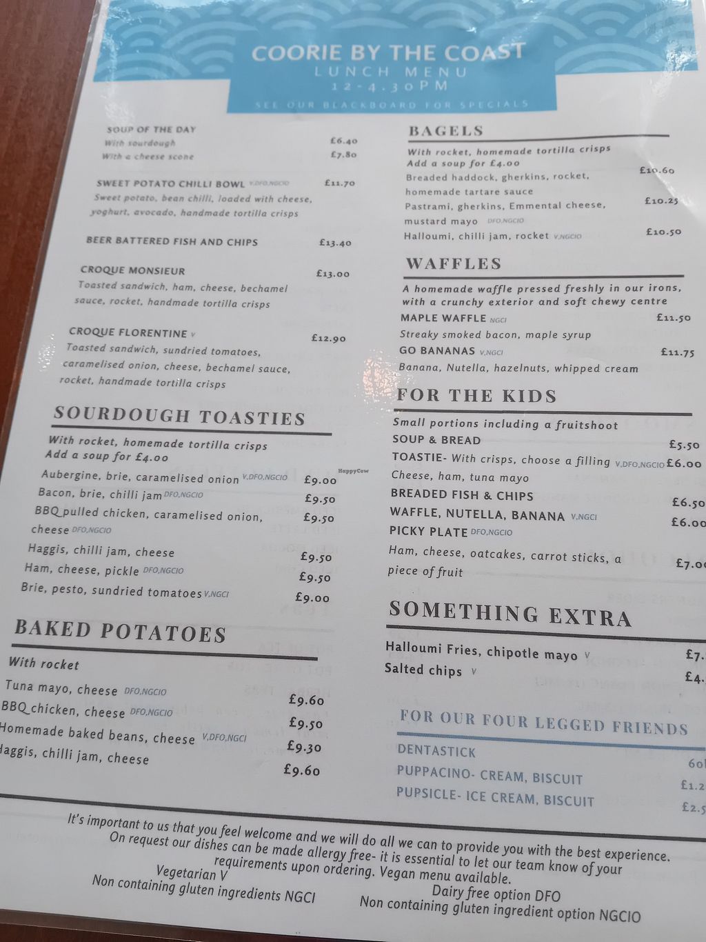 Vegan menu