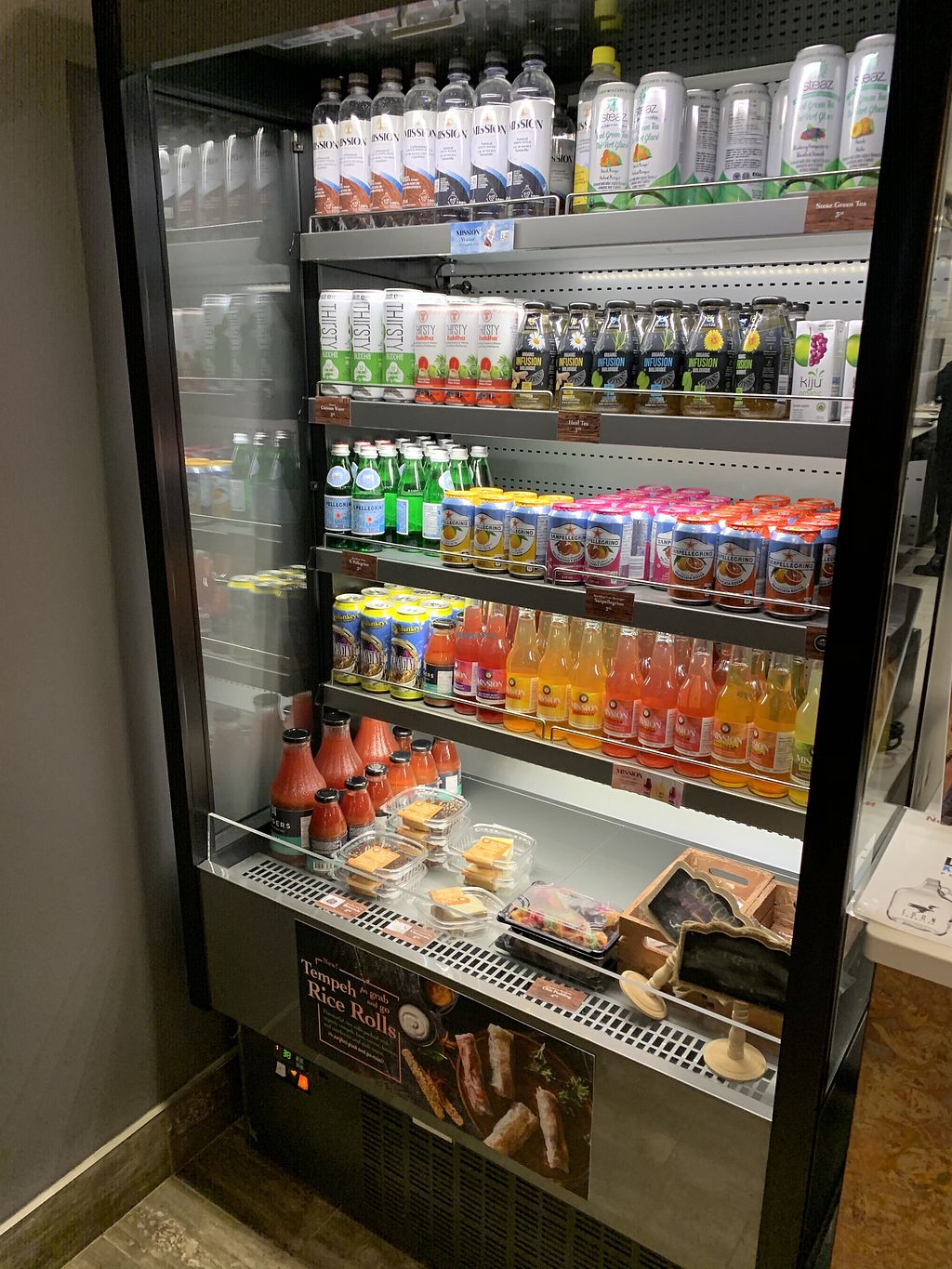 Drinks and on the go healthy snacks at a reasonable price.