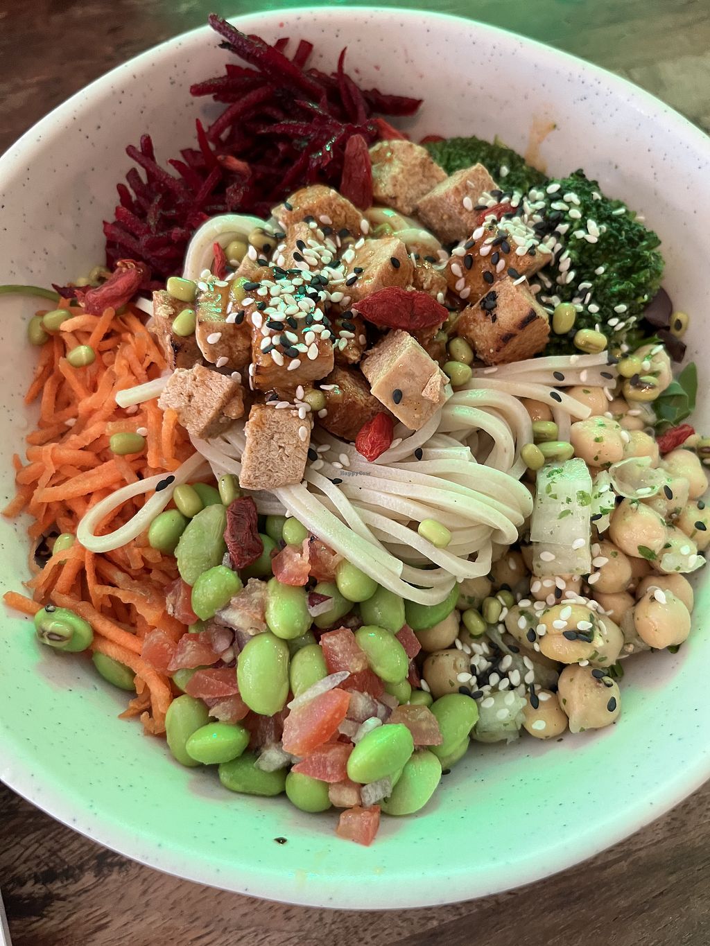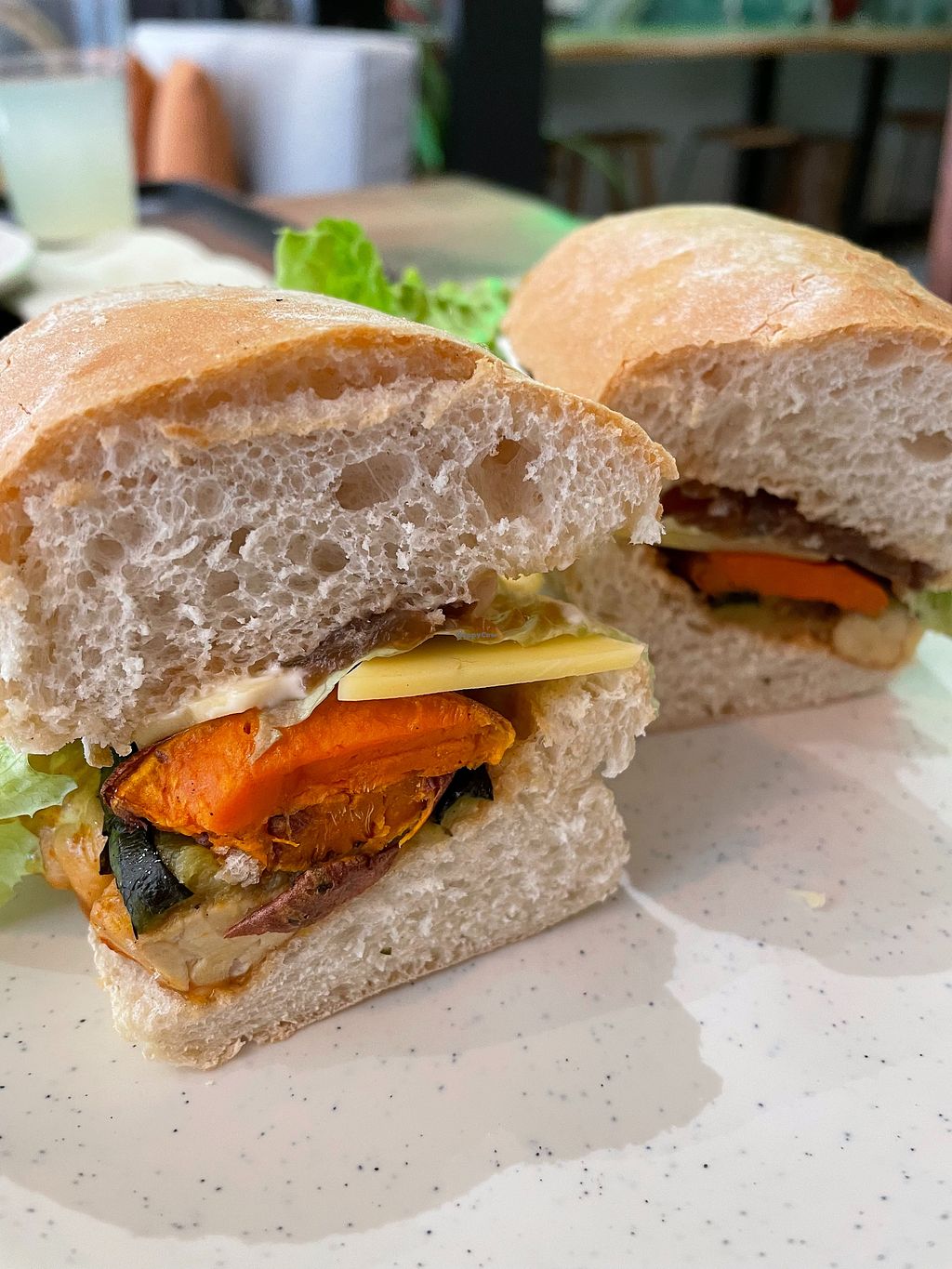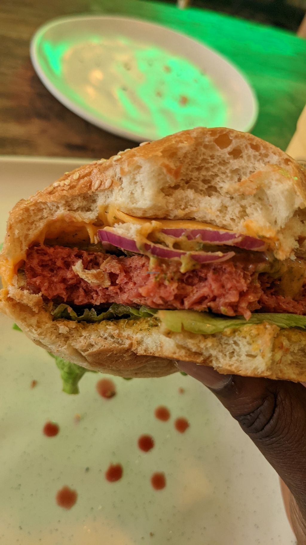 The Mondego burger with sweet and standard fries. Red fruit smoothie …
