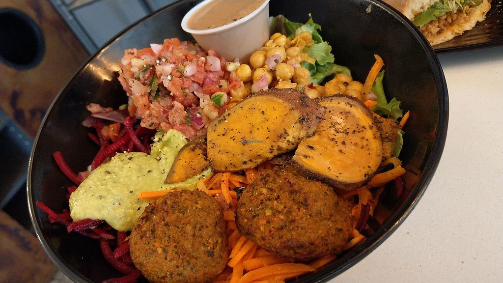 Nice large buddha bowl and amazing burger