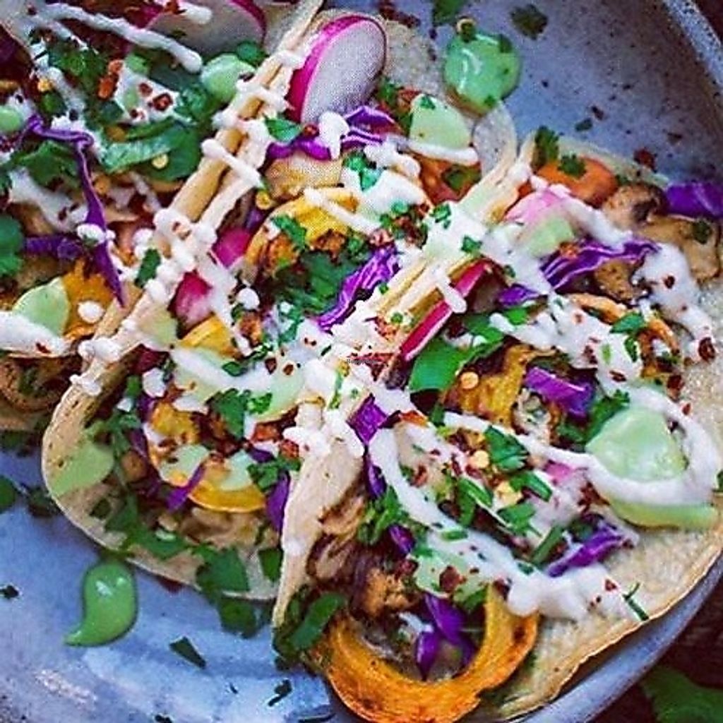 Serves meat, vegan options available. Mule bar and eatery with several vegan options, including sweet potato tacos, delicata squash tacos, kettle corn, chips & salsa, and fries. Open Tue-Thu 4:00pm-11:00pm, Fri-Sat 4:00pm-12:00am. Closed Sun and Mon.