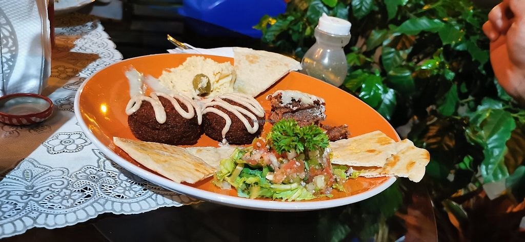 Read moreHummus, babaganoush and garlic sauce were pretty good. Hamburger is impossible to eat but okay in taste and has vegan cheese. Fries were terrible wobbly and not fried long enough (like so often in South America:().
