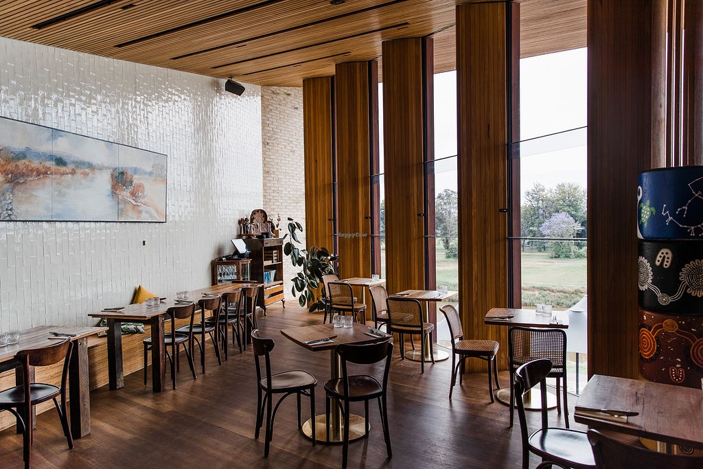 Serves meat, vegan options available. Refined café, small bar, deli and bistro. Vegan items include house-made crumpets, coconut granola, loaded avocado toast, vegan brie with native fruits, marinated olives, myrtle and beetroot risotto, pepperleaf, carrot and pumpkin soup, wattle seed and mustard potato salad, saltbush tomato medley, native citrus, cucumber and fennel salad, vegan panna cotta and vegan chocolate davidson plum cake with coconut gelato. Also available is a three course chef's selection that can be veganised on request. A few vegan wines available also. Reported closed August 2023.