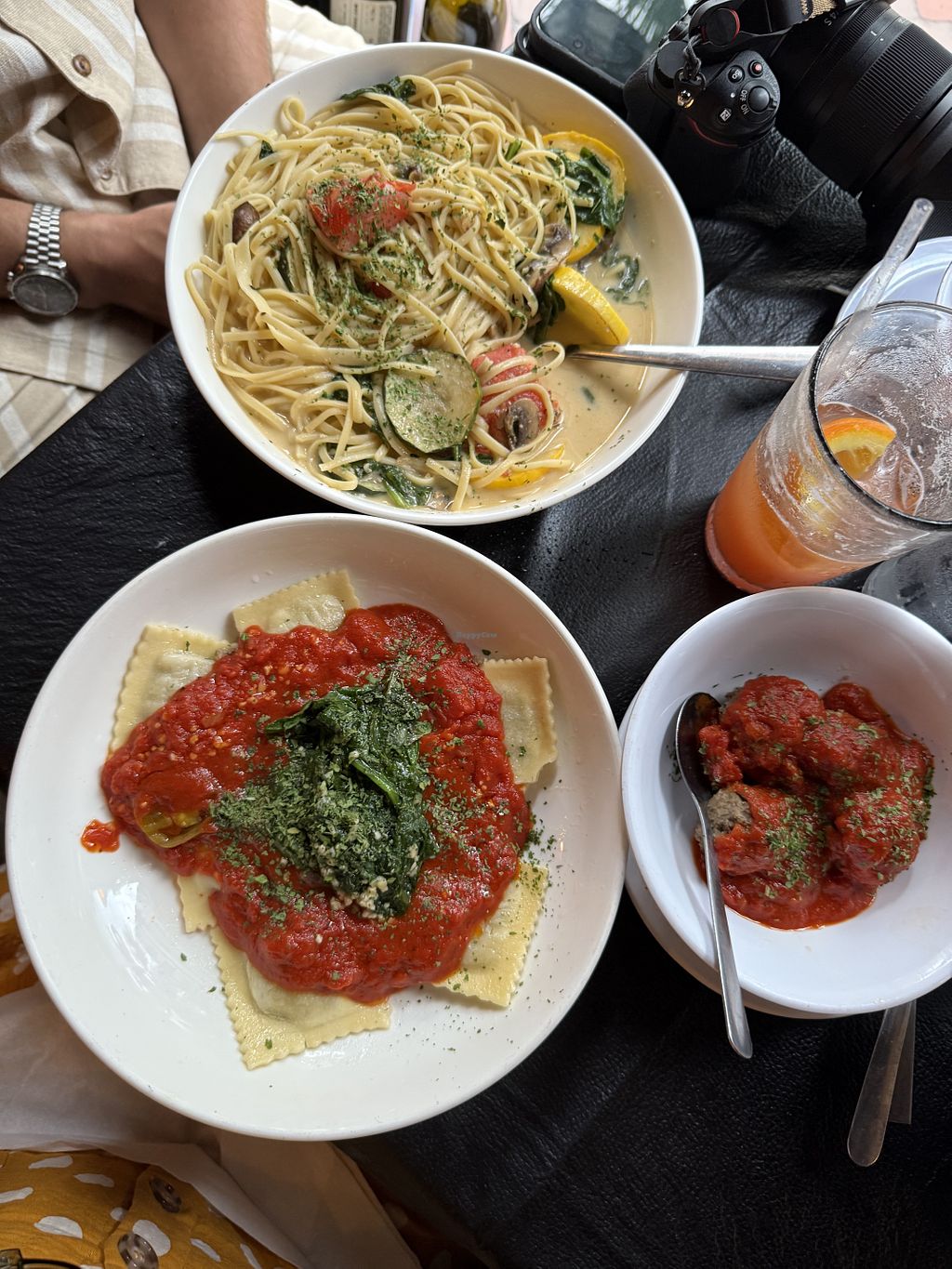 We went here to try the vegan ravioli, which is a white bean/asparagus stuffed ravioli, with sautéed spinach on top. It’s quite good! My husband had the meatless meatballs with spaghetti. I’m not sure if the meatballs are vegan or just plant-based. It was a nice atmosphere, and our server said they’re going to be adding more vegan/vegetarian options.