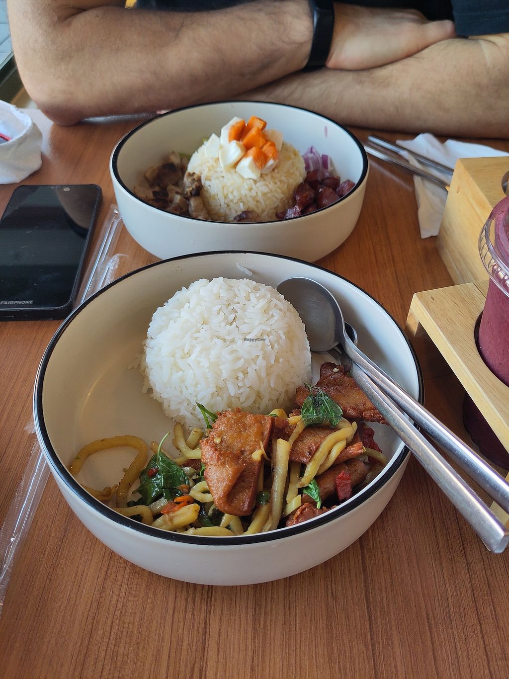 I ordered the "Authentic recipe Thai spicy Basil dish with bamboo shoots" and the "Crisp salad with creamy sesame Yuri dressing". The food was good, but the portions could be a bit bigger. Also the Thai spicy dish was really spicy, so be aware 😅 The berry smoothie was amazing! 😋 The staff is really friendly and you have a nice view on the Wat Suthat Thepwararam Ratchaworamahawihan while eating.