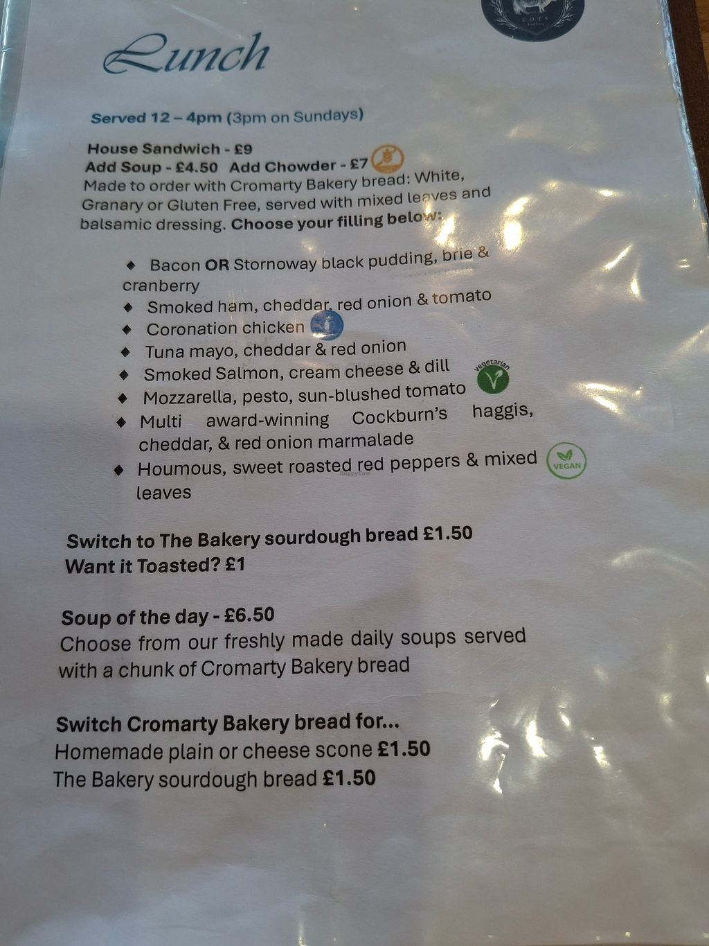 November 2025 - menu showing vegan sandwich