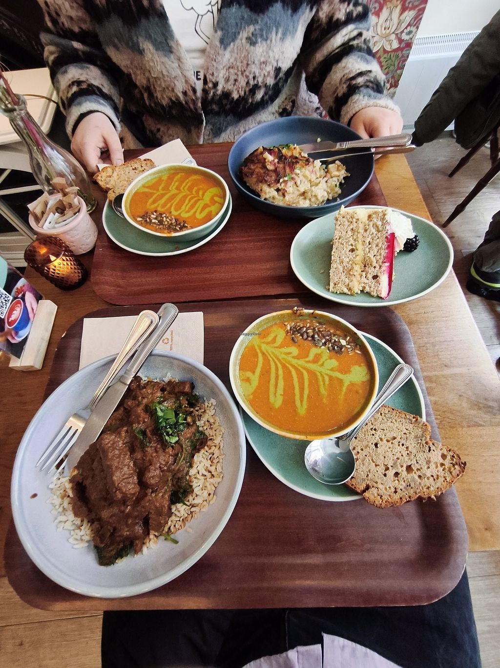 Read moreGran buona zuppa! Non mi ricordo il nome del piatto principale e del dolce ma magari domani ci guardo (perché di sicuro ci torno, ho visto una torta al cioccolato di due piani e non me la voglio perdere) qui si può ordinare a caso perché è tutto Vegan. Cornucopia è definitivamente il mio posto preferito, ma non solo a Dublino proprio nel mondo :)