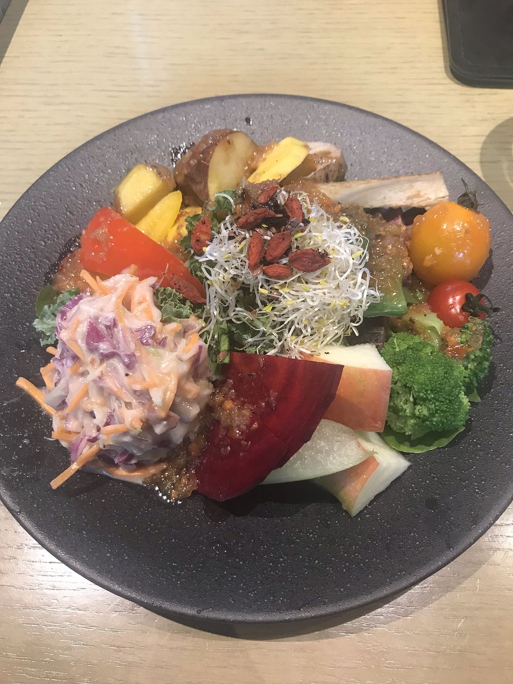 Considering the high price and small variety and quantity of vegetables in Japan this is a veggie paradise. The salad buffet for 2200 yen is great for filling up on veggies as much as you want or can. There’s also a menu a la carte with cheaper prices, check if it’s vegan though, since there’s meat and fish etc. Can also get smoothies and juices in there or takeout!