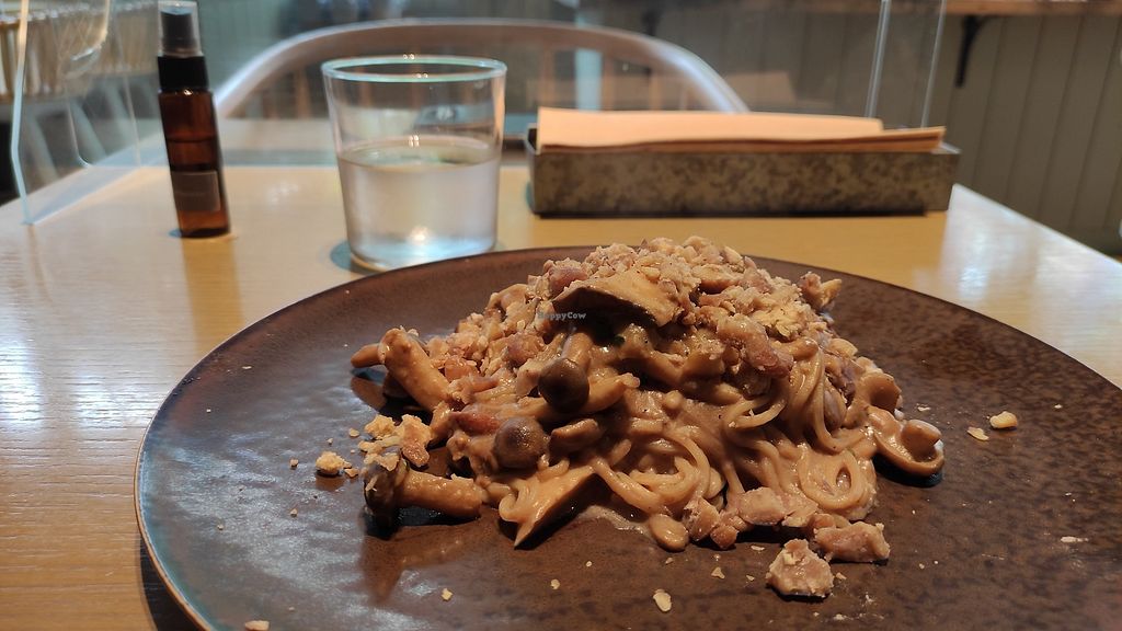We ate a Japanese pasta-dish, with Italian style pasta and Japanese style sauce and vegetables/mushrooms. The portions were of good size, and the food was exciting. They have symbols for vegan, gluten-free and raw items on the menu, and several of the options were indeed vegan. Uploaded some pictures of the menu.