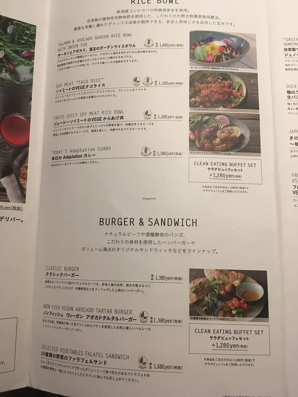 Serves meat, vegan options available. Part of health store group. The restaurant concept is "clean eating." Choose from the salad bar or order from the menu which has some vegan dishes. Among the choices are burgers, sandwiches, rice bowls, pastas, smoothies, and desserts. Located in Ebisu Station's Atre West. Reported closed April 2022.