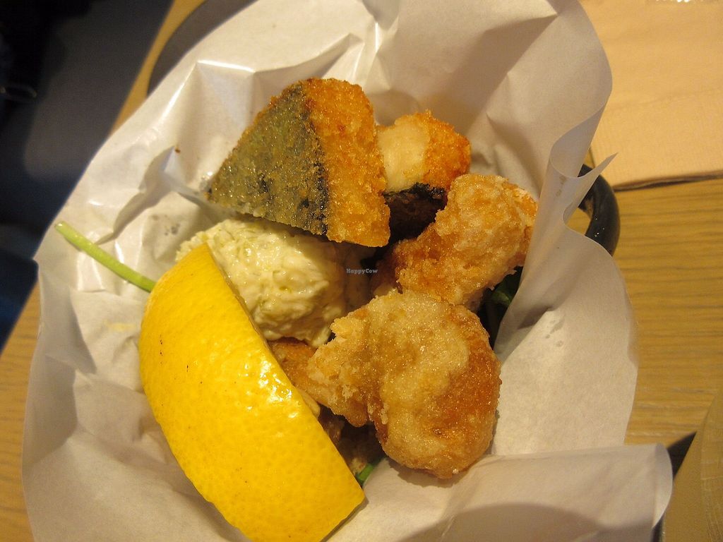 I noticed there is an appetizer with the fried soy meat and fried "non-fish," presumably without the sauce, so I'll try that instead next time.