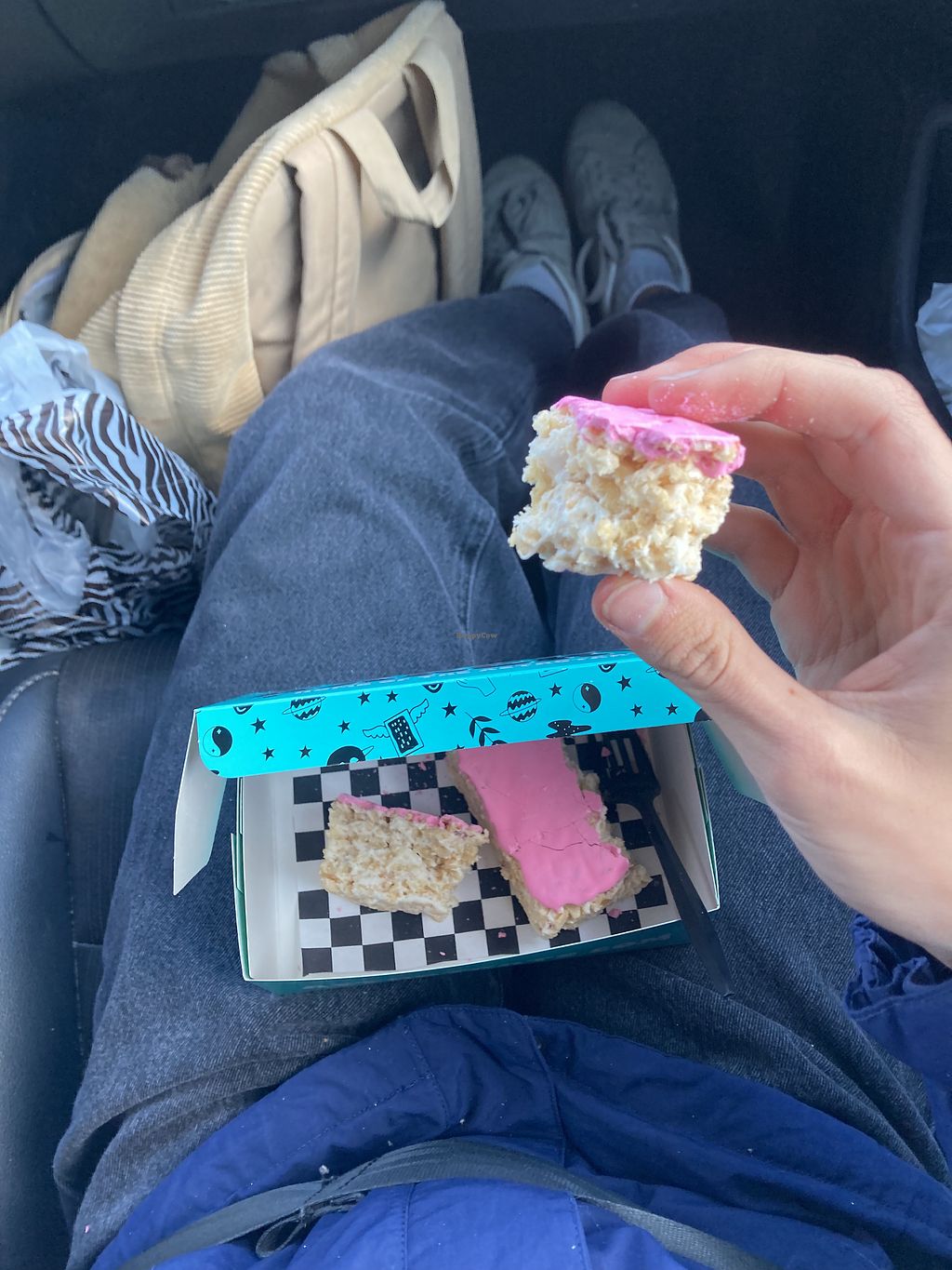 All vegan bakery! Right next door to a funky fun coffee shop that also sells Cosmic Bakery items for the same price. Man, I miss pop tarts, and these are legit with chunks of real fruit and flaky crust. Yum!